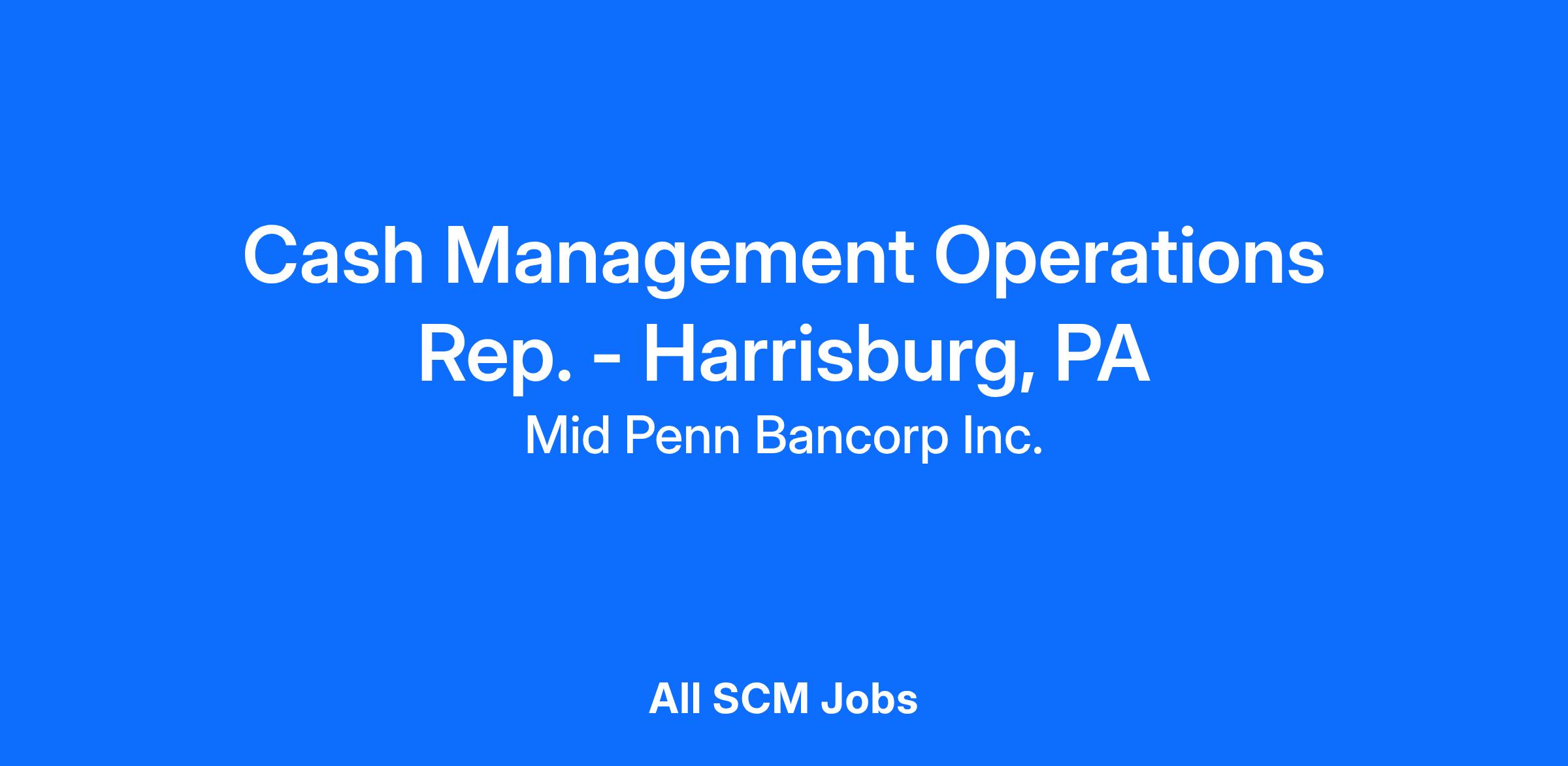A great experience starts with a great team! Mid Penn Bank is actively seeking a Cash Management Operations Representative in Harrisburg, PA
