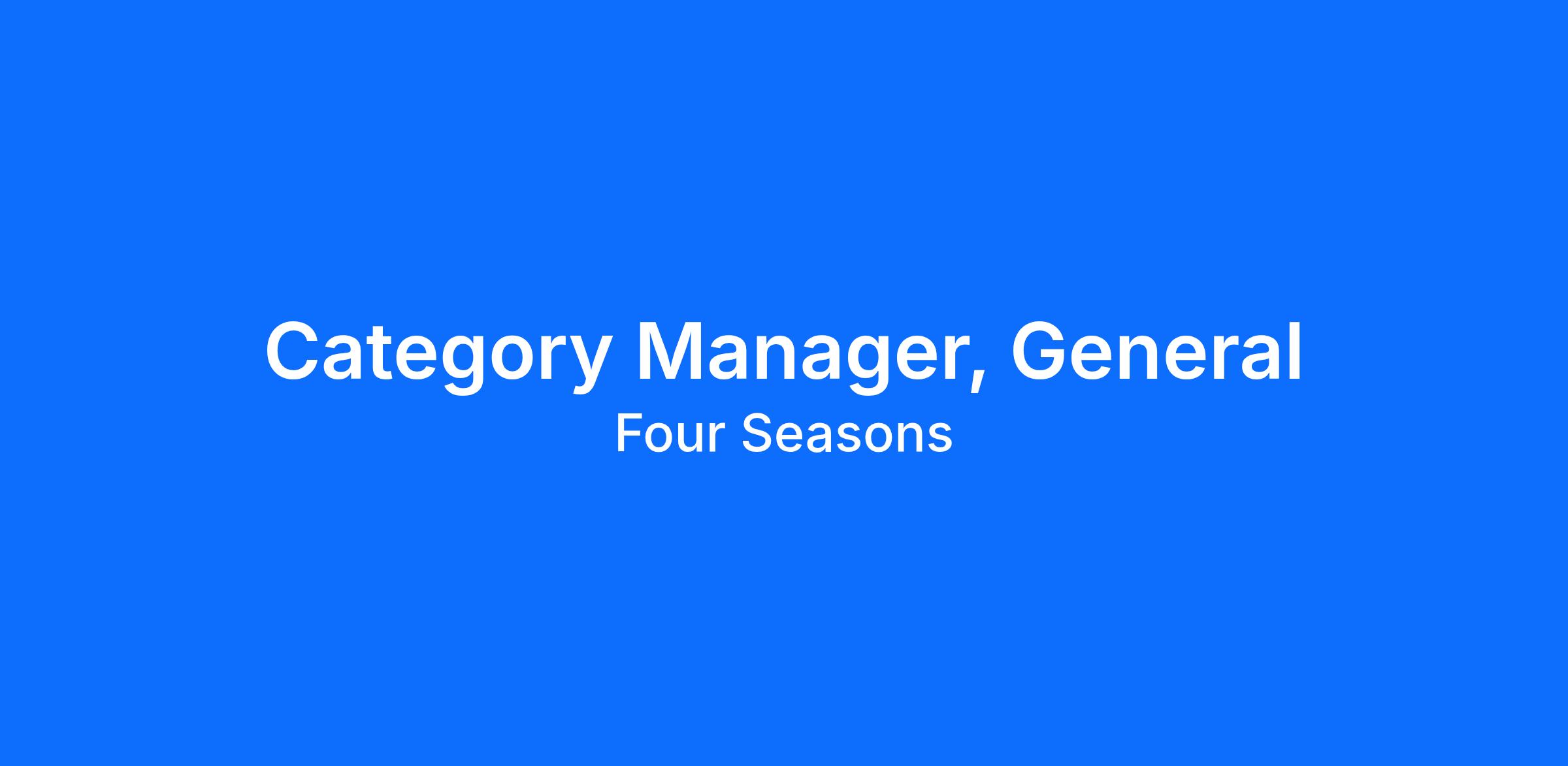 Four Seasons Hotels and Resorts is a global, luxury hotel management company. We manage over 130 hotels and resorts and 50 private residences in 47 countries around the world and growing. Central to Four Seasons employee experience and social impact programming is the company’s commitment to supporting cancer research, and the advancement of diversity, inclusion, equality and belonging at Four Seasons corporate offices and properties worldwide. At Four Seasons, we are powered by people and our culture enables everything we do.Category Manager, General