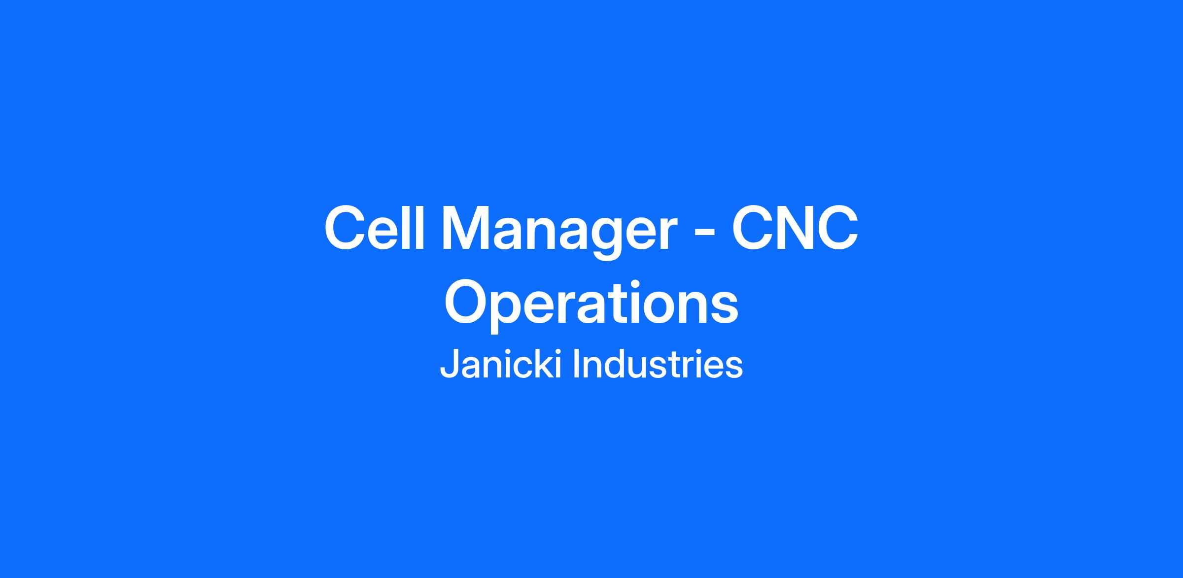 Janicki Industries is an innovative, family-owned aerospace company located at the foot of the Cascades. We focus on engineering and manufacturing complex projects for companies in the aerospace, defense, and space industries. We are looking for a Cell Manager of CNC Operations to join our growing team.