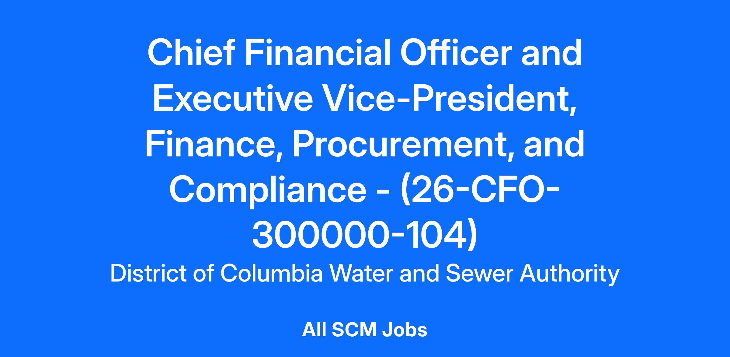 The Chief Financial Officer and Executive Vice-President, Finance, Procurement, and Compliance is a member of the Senior Executive Team (SET) and is the organization’s key leader in ensuring the financial sustainability of DC Water and its overall strategic vision. The role is responsible for strategic planning, management, and control of all finance, procurement, and contract compliance-related activities at DC Water, ensuring alignment with organizational objectives and compliance with industry standards and regulatory requirements. This includes direct responsibility for accounting operations, financial governance, contract compliance, financial planning, payroll, and accounts payable, overall financial planning and forecasting, rate setting, budget alignment, risk management, asset management, treasury and debt management, and strategic procurement.
