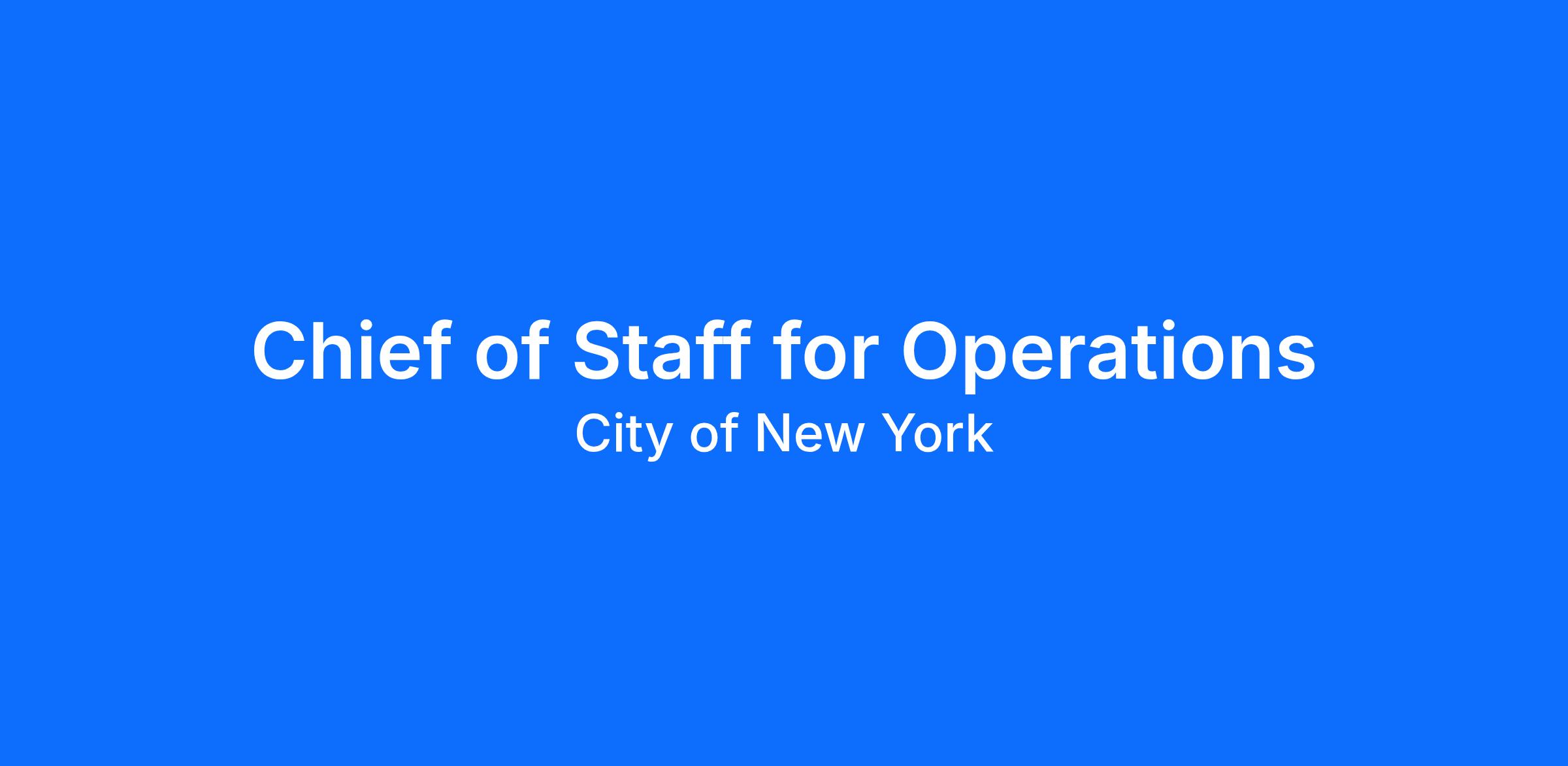 DOI seeks an outstanding candidate to serve as Chief of Staff for the Operations Division. The selected candidate will be an integral member of the Operations leadership team. Reporting to the Deputy Commissioner for Operations and working with stakeholders and subject matter experts from the agency’s Operations, Investigative, Compliance and Legal units, the Chief of Staff will provide project management support for a portfolio of agency initiatives and projects with the goal of optimizing operational business processes and procedures.