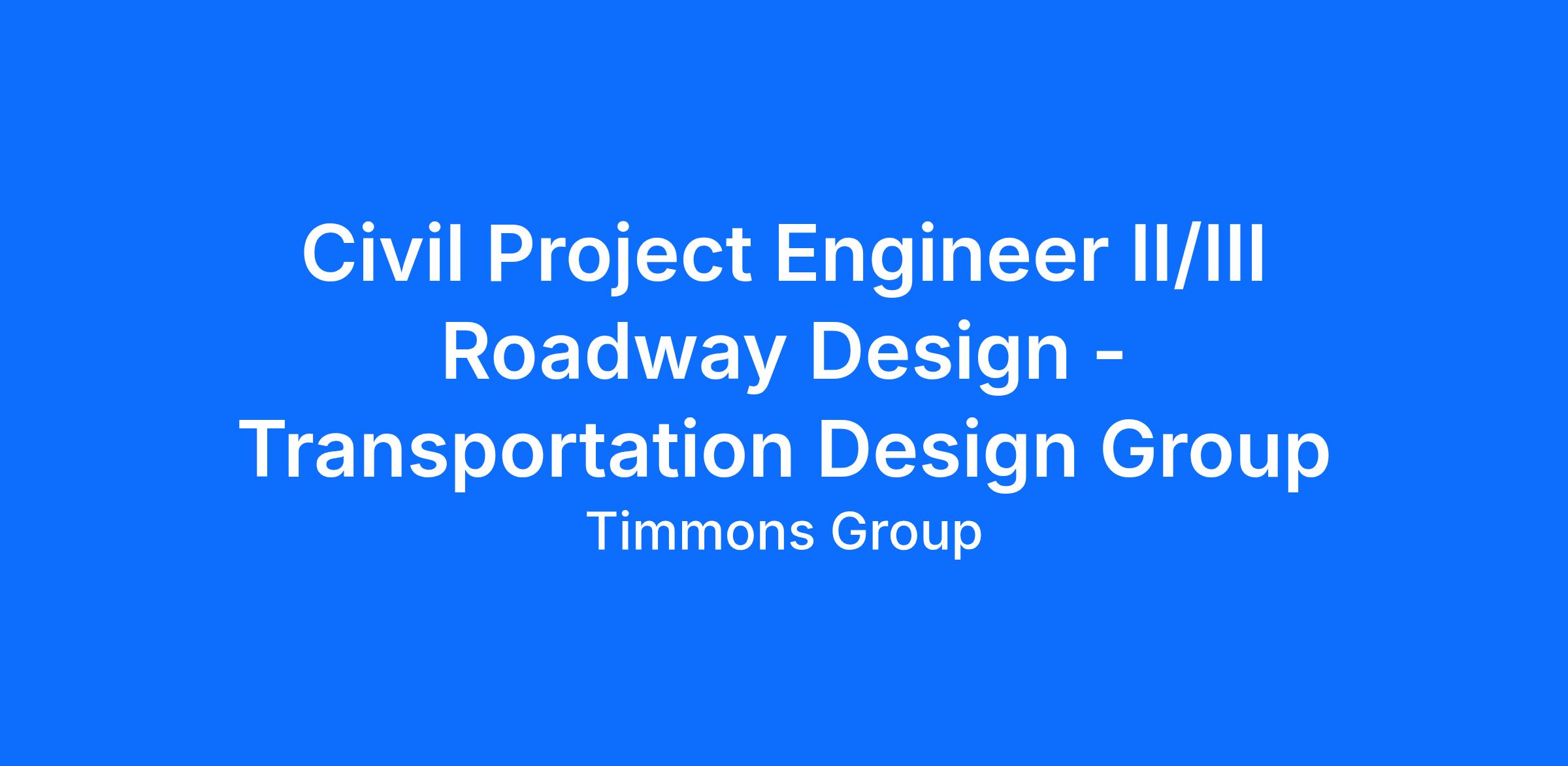 Timmons Group is seeking a Civil Project Engineer II/III Roadway Design - Transportation Group candidate to join our Transportation Design Group located in our Ashburn, VA office location.