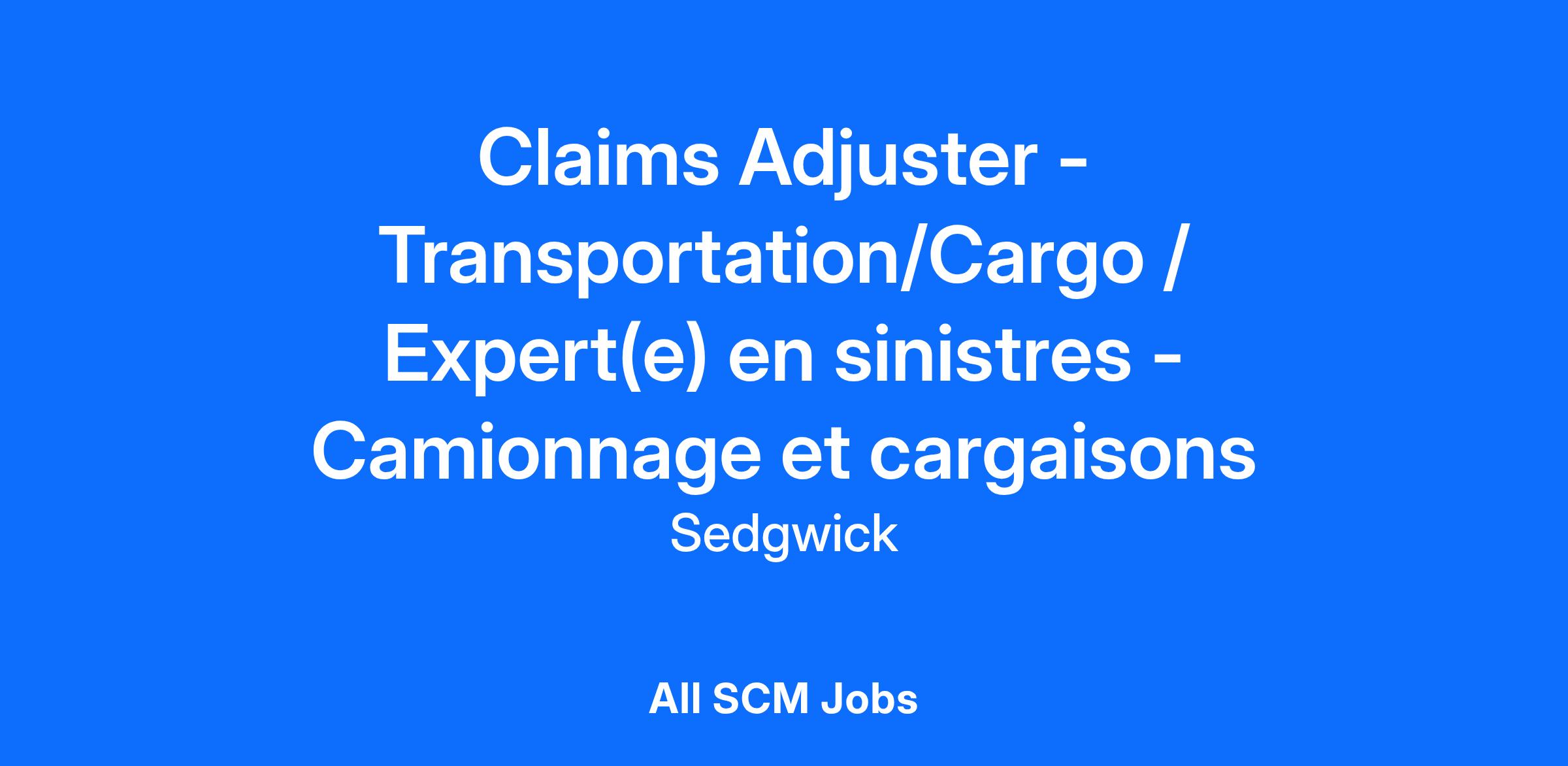 Claims Adjuster - Transportation/Cargo / Expert(e) en sinistres - Camionnage et cargaisonsOBJECTIF PRINCIPAL L’expert(e) en sinistres est chargé(e) d’enquêter, d’évaluer et de quantifier les réclamations d’assurance. L’expert(e) en sinistres doit déterminer et fournir des recommandations en ce qui concerne la couverture, la responsabilité et le montant à verser, selon les modalités de la police.