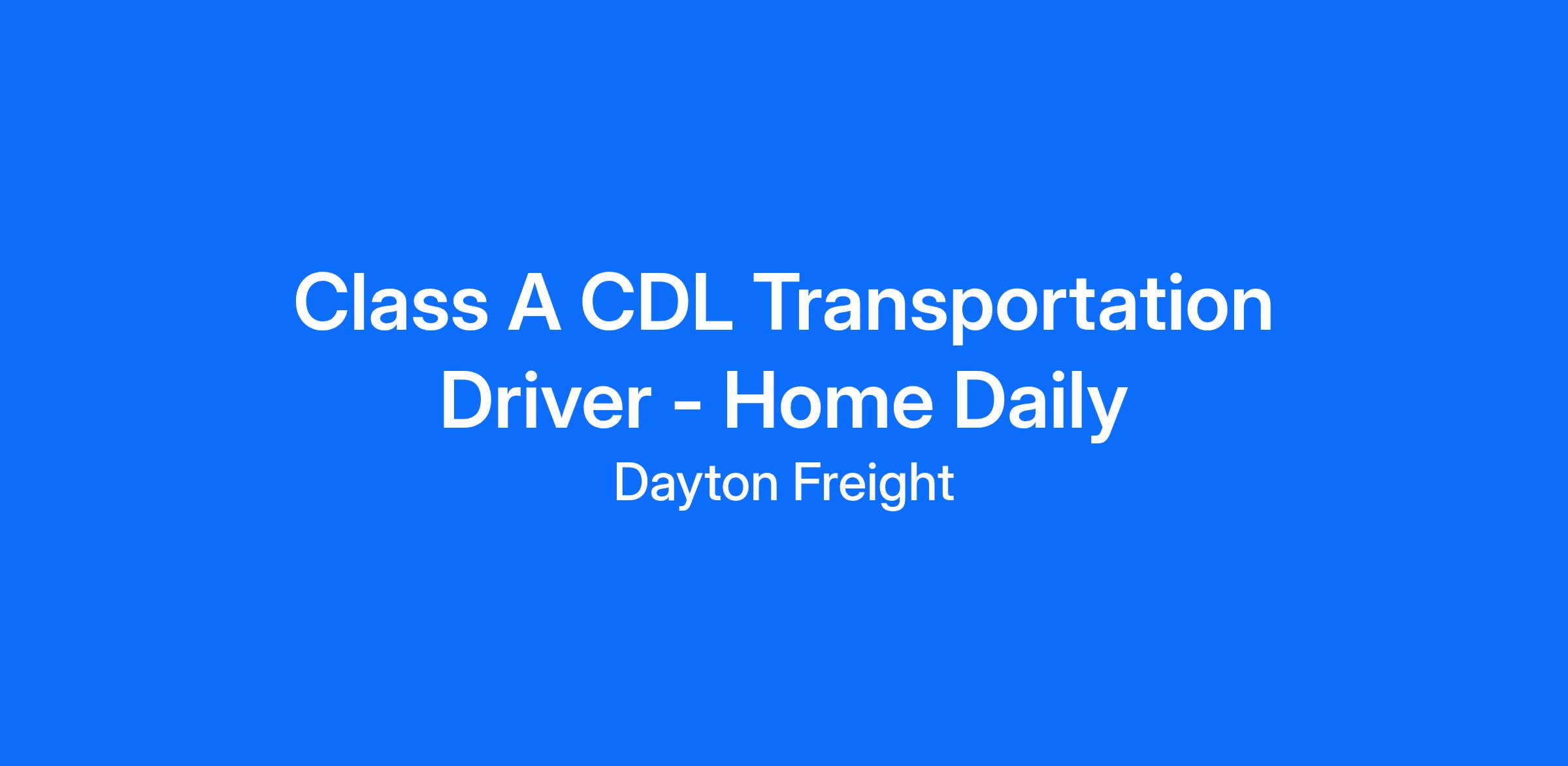 Class A CDL Transportation Driver - Home Daily