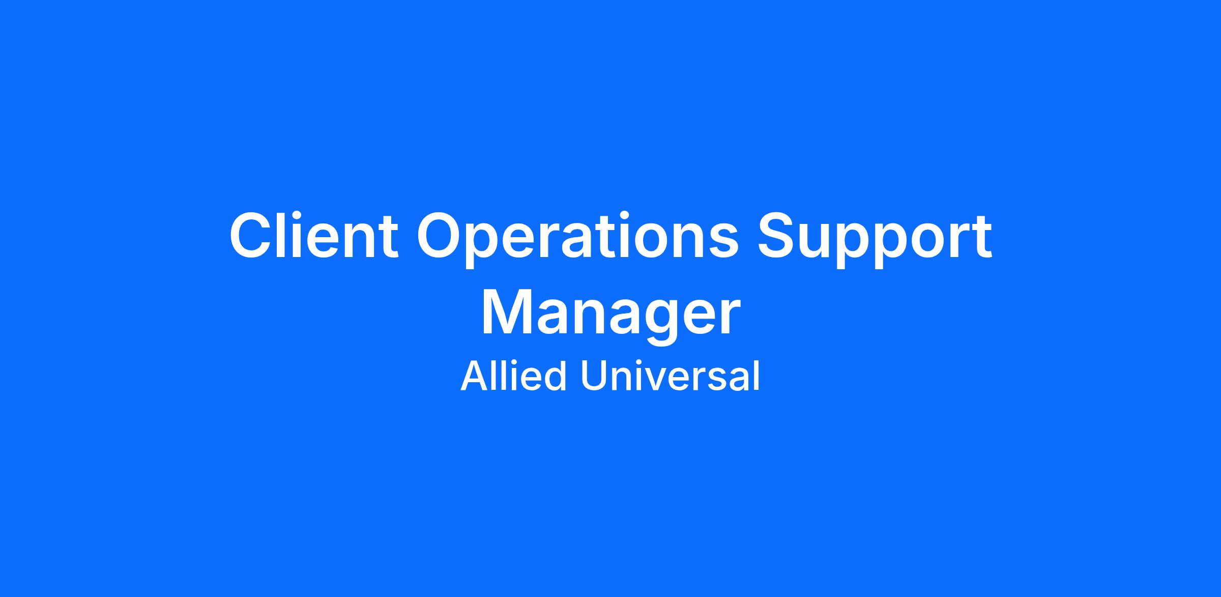 Allied Universal® is hiring a Client Operations Support Manager. In partnership with Branch Leadership and functional leadership, the Client Operations Support Manager is responsible for the day-to-day operations of administrative functions at an account level a such as invoicing, scheduling, client relations, event management, compliance, and interviewing/selection for the assigned account(s) for which the Client Operations Support Manager is responsible. The Client Operations Support Manager is solely responsible for the development, upkeep, and maintenance of all systems at the account level to ensure both contractual compliance and stated financial goals through direct collaboration with the branch leadership, regional management personnel and functional departments. The Client Operations Support Manager will safeguard all personnel/licensing related files and records, have ownership of uniform and equipment procurement processes, complete all necessary paperwork related to employment in conjunction with the employee, and maintain operational metrics to drive business decisions.