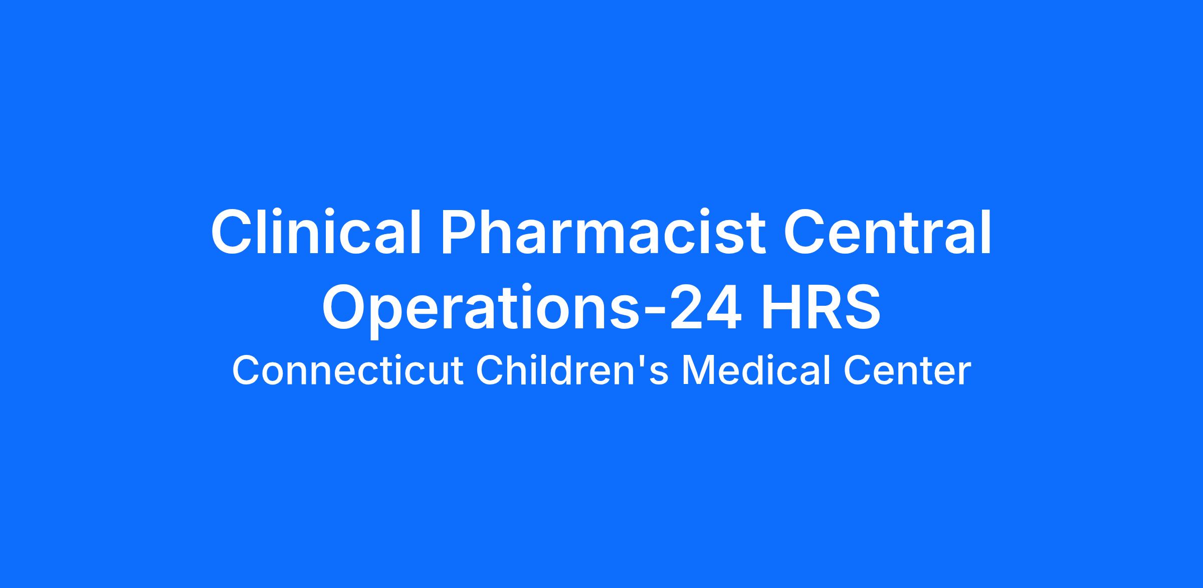 DescriptionThe Clinical Pharmacist Central Operations is a licensed pharmacist responsible for ensuring optimal drug therapy by designing therapy, monitoring, and dispensing medications following standard operating procedures (SOPs), ACLS, PALS, and USP guidelines. Serves as medication expert. Directs the work of support staff including Pharmacy Technicians. Responsible for ensuring medication management abides by hospital, state, and federal requirements.
