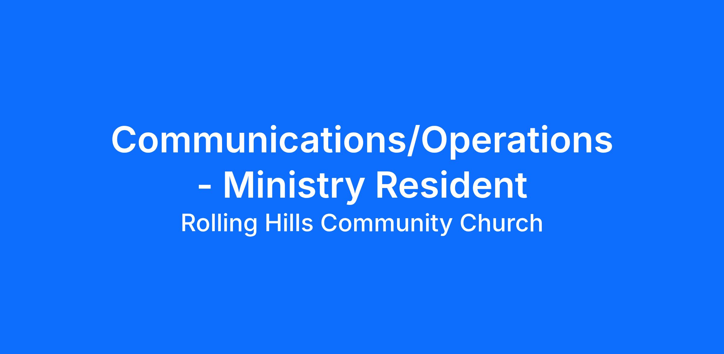 Communications/Operations Residents will choose one of the following ministry areas:
