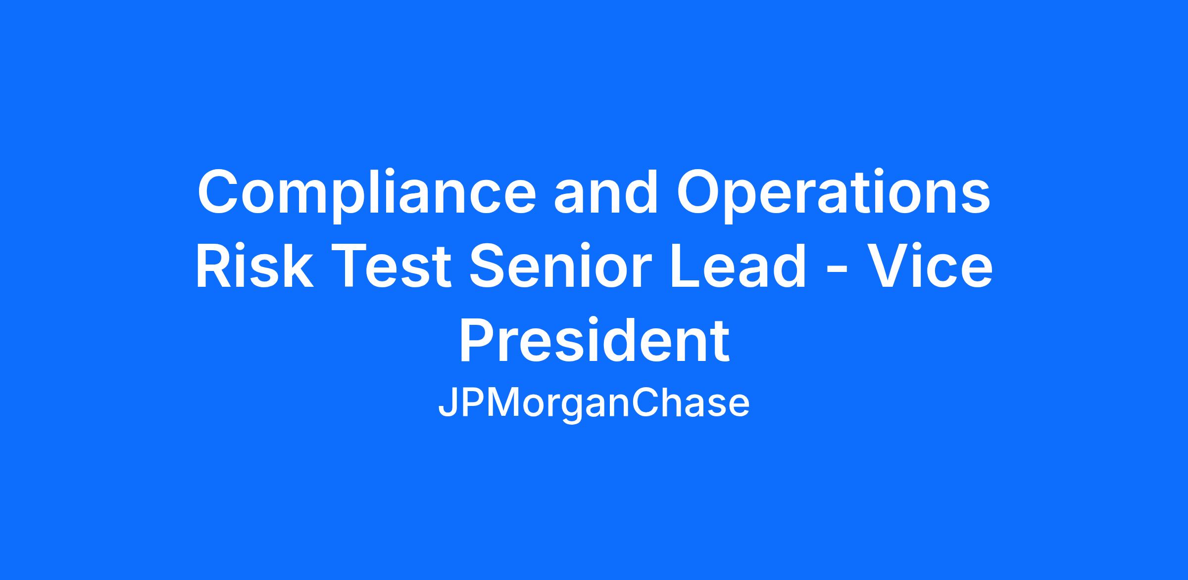 DescriptionBring your expertise to JPMorgan Chase. As part of Risk Management and Compliance, you are at the center of keeping JPMorgan Chase strong and resilient. You help the firm grow its business in a responsible way by anticipating new and emerging risks, and using your expert judgement to solve real-world challenges that impact our company, customers and communities. Our culture in Risk Management and Compliance is all about thinking outside the box, challenging the status quo and striving to be best-in-class.