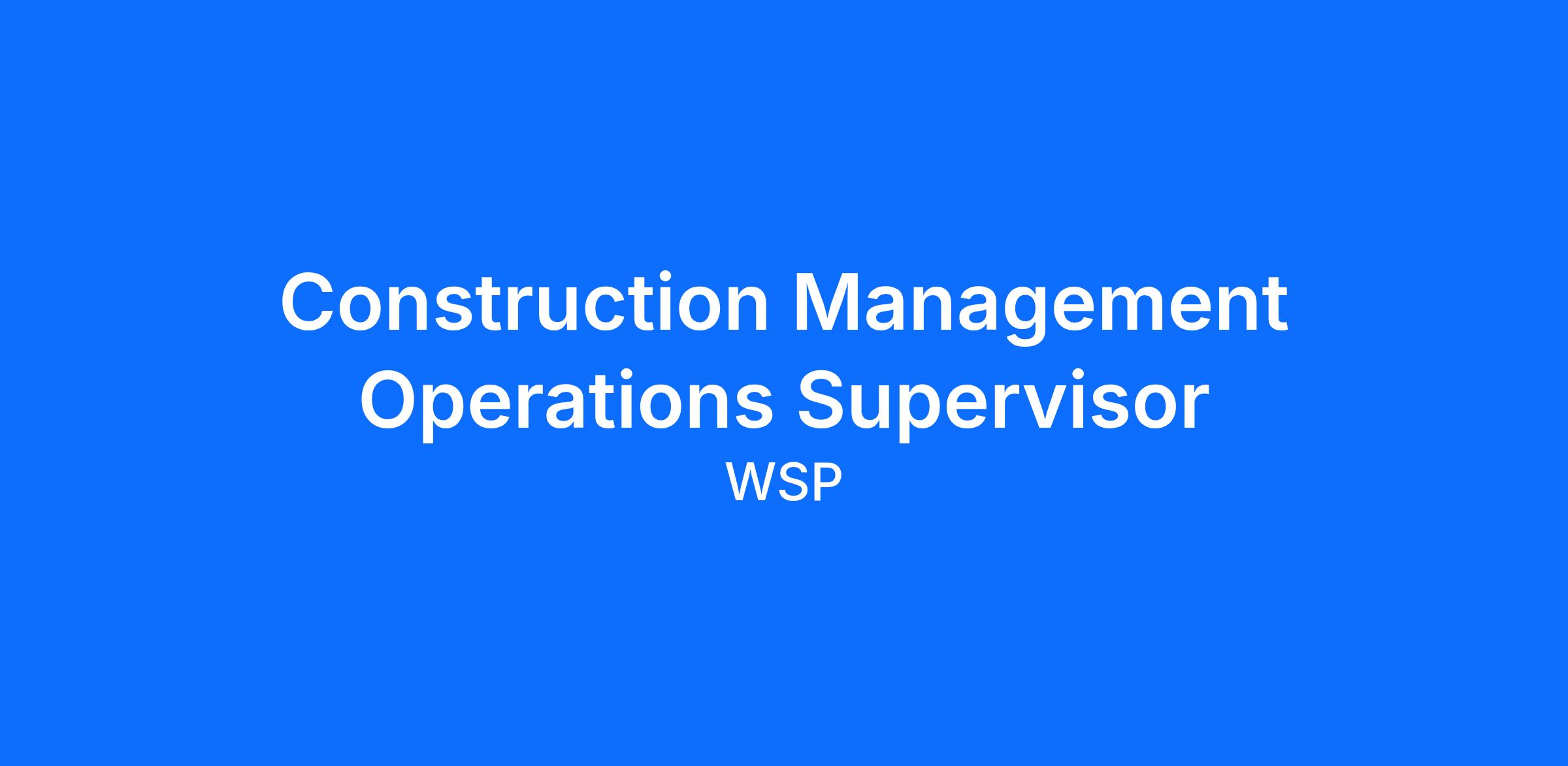 DescriptionWSP is currently initiating a search for a Construction Management Operations Supervisor for our Minneapolis, MN office. Be involved in projects with our Program Management Team and be a part of a growing organization that meets our clients' objectives and solves their challenges.