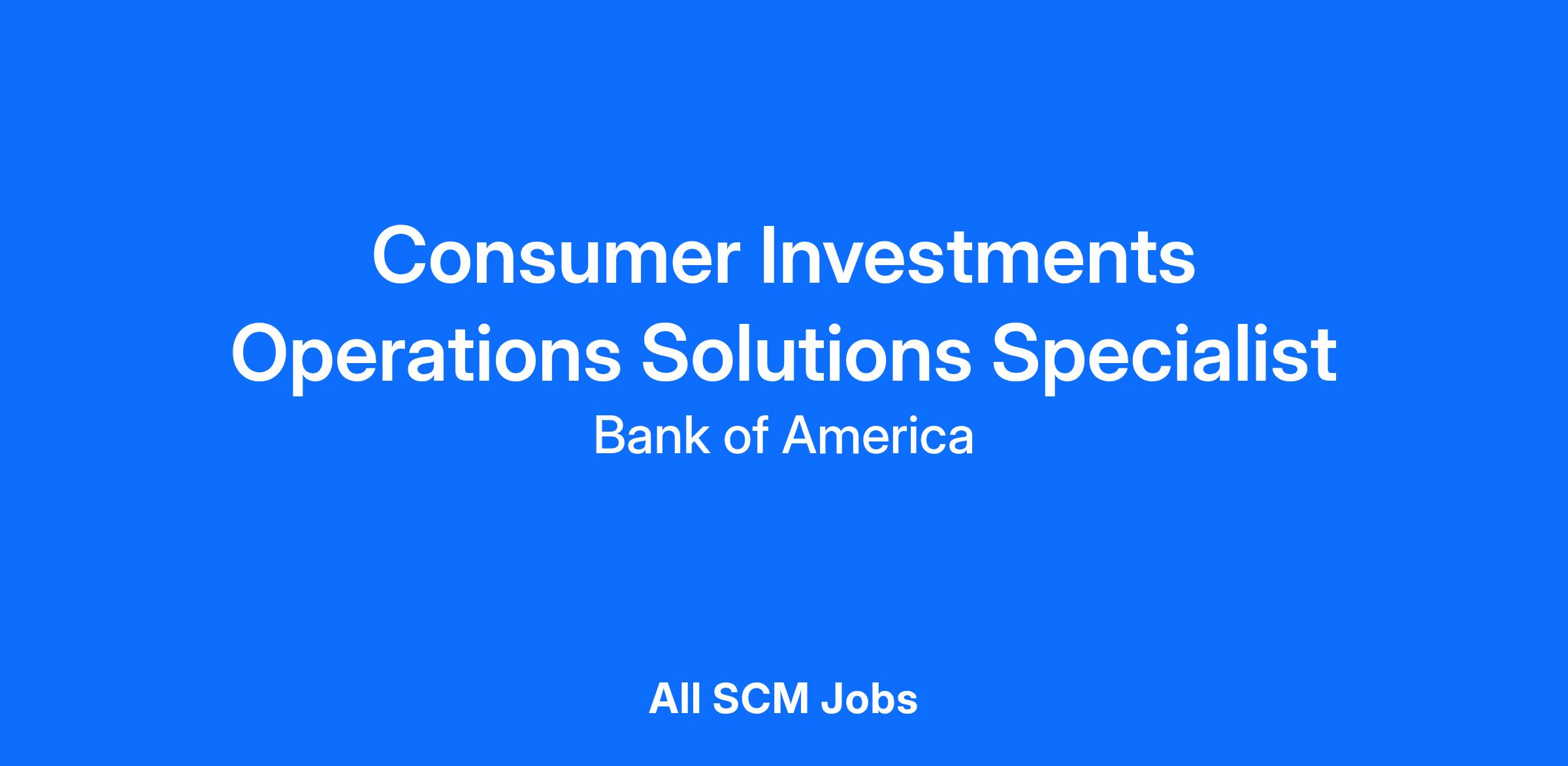 Strong business acumen with an in depth understanding and alignment to the Consumer Investments operating model and overall value proposition
