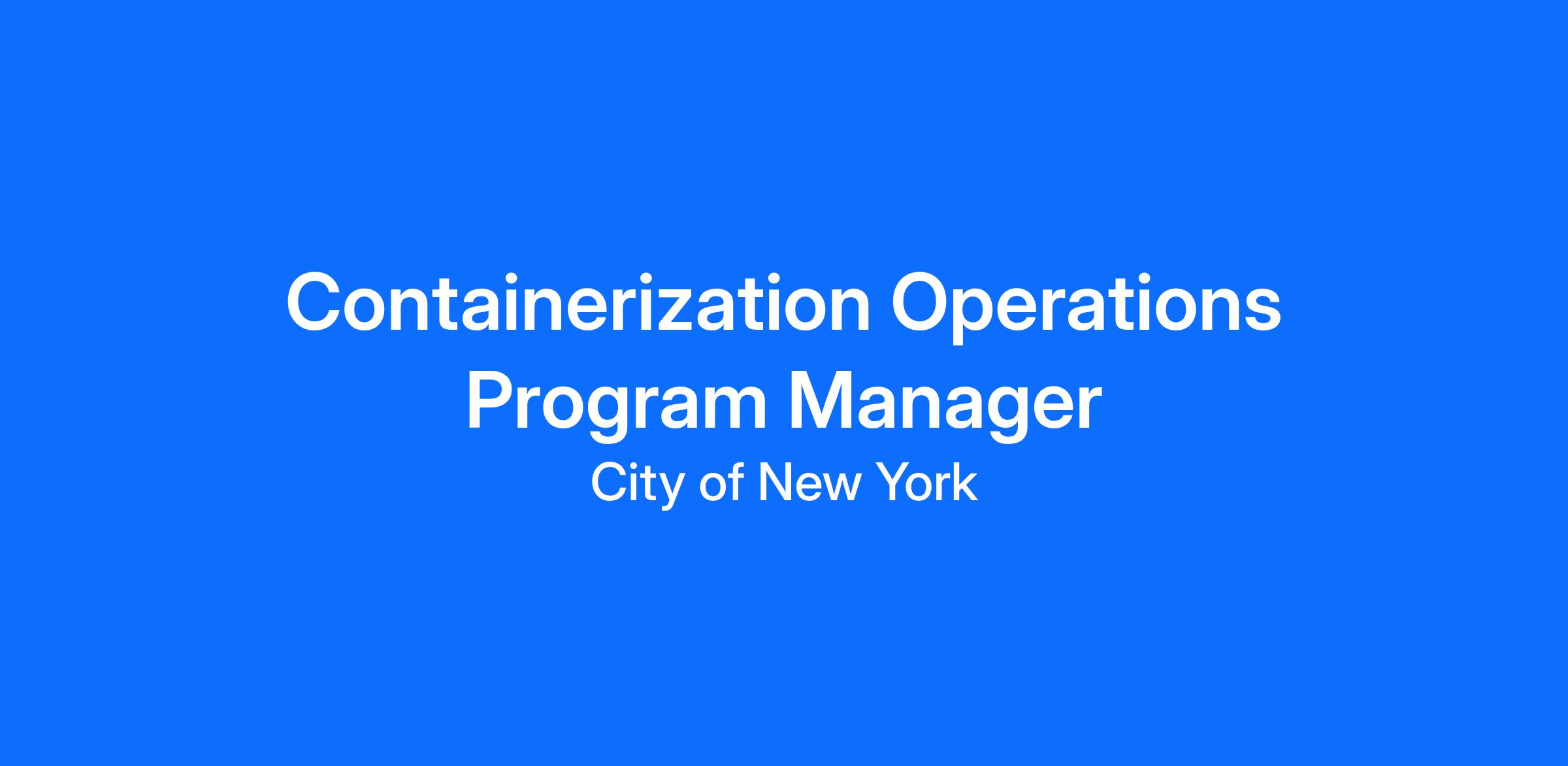 The Department seeks an experienced Containerization Operations Program Manager (COPM) for its Containerization Unit to project manage the field deployment of containers being distributed across the City. The COPM will manage the site planning (including desktop data analysis) oversee container installation and manage ongoing operational status (maintenance, repair, and cleaning). Under general supervision, with latitude for independent initiative and decision-making, the COPM will ensure that all containerization contractual obligations are being fulfilled and that all work performed is to the highest level while coordinating within the agency, across agencies and with vendors.