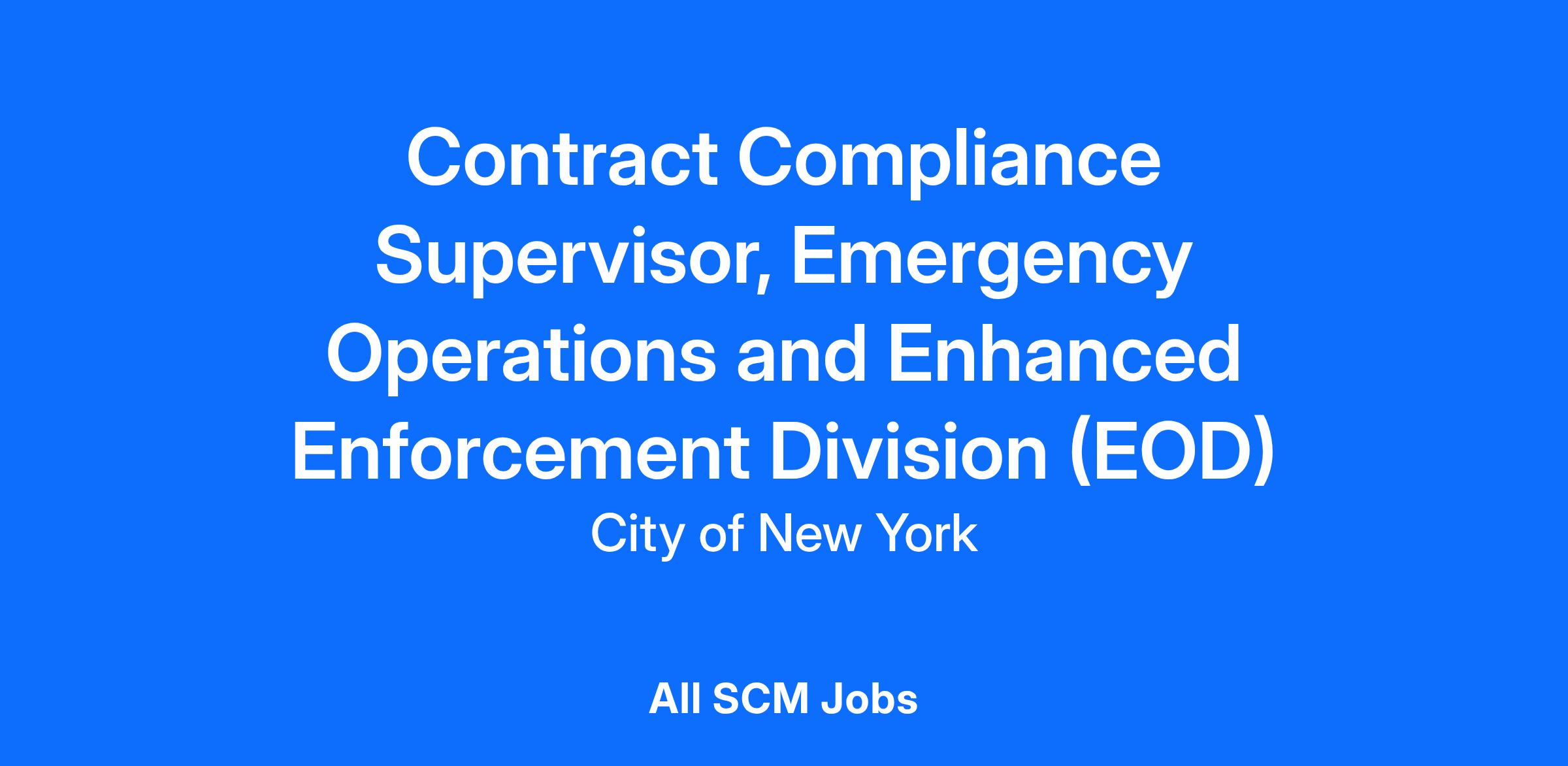 Your role will be Contract Compliance Supervisor/Community Coordinator in the Emergency Operations and Enhanced Enforcement Division, the selected candidate will be responsible for, but not be limited to the following: