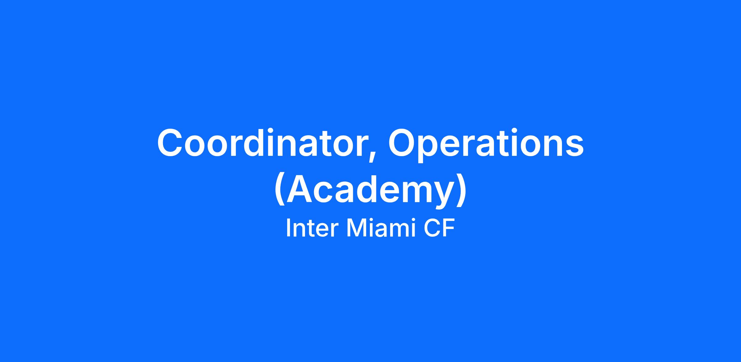 Inter Miami CF is looking for a passionate and dedicated Academy Operations Coordinator to join our Operations team. In this full-time role, you’ll play a vital part in maintaining world-class operations and facilities that meet the highest professional standards.