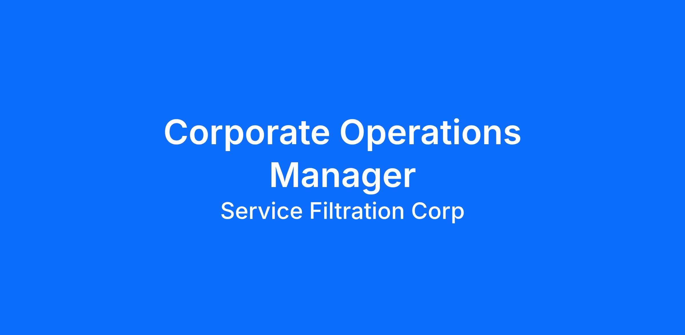 Serfilco Ltd, a worldwide leading manufacturer and supplier of pumps and filters to chemical processing industries currently has a vacancy for a Corporate Operations Manager in our Northbrook, IL facility. An overview of our products is available at www.serfilco.com.
