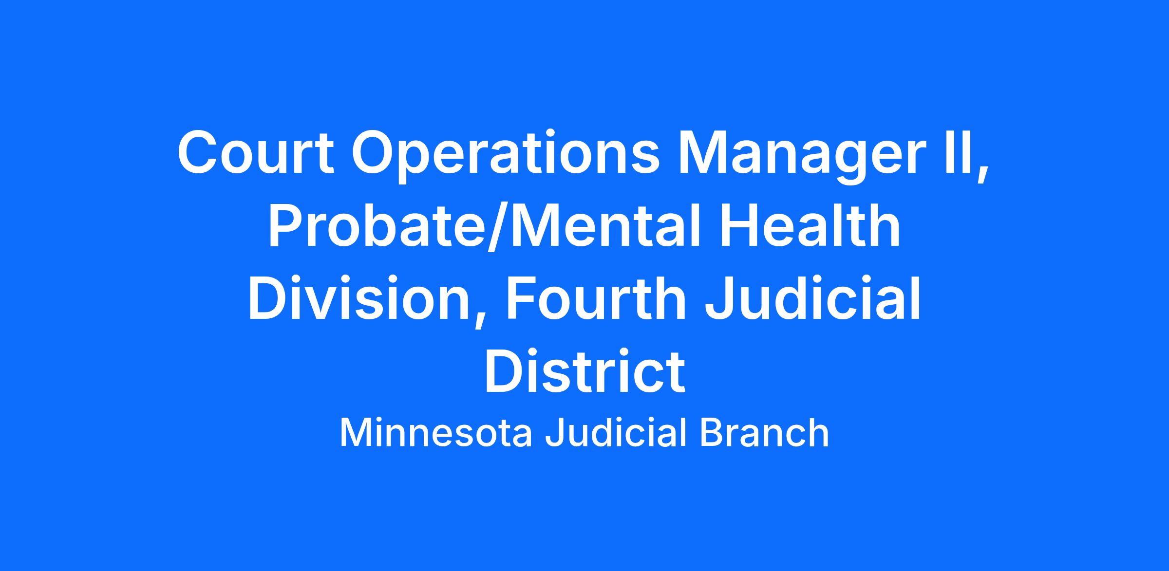 Hennepin County District Court invites qualified applicants for a Court Operations Manager II position in the Probate/Mental Health Division.