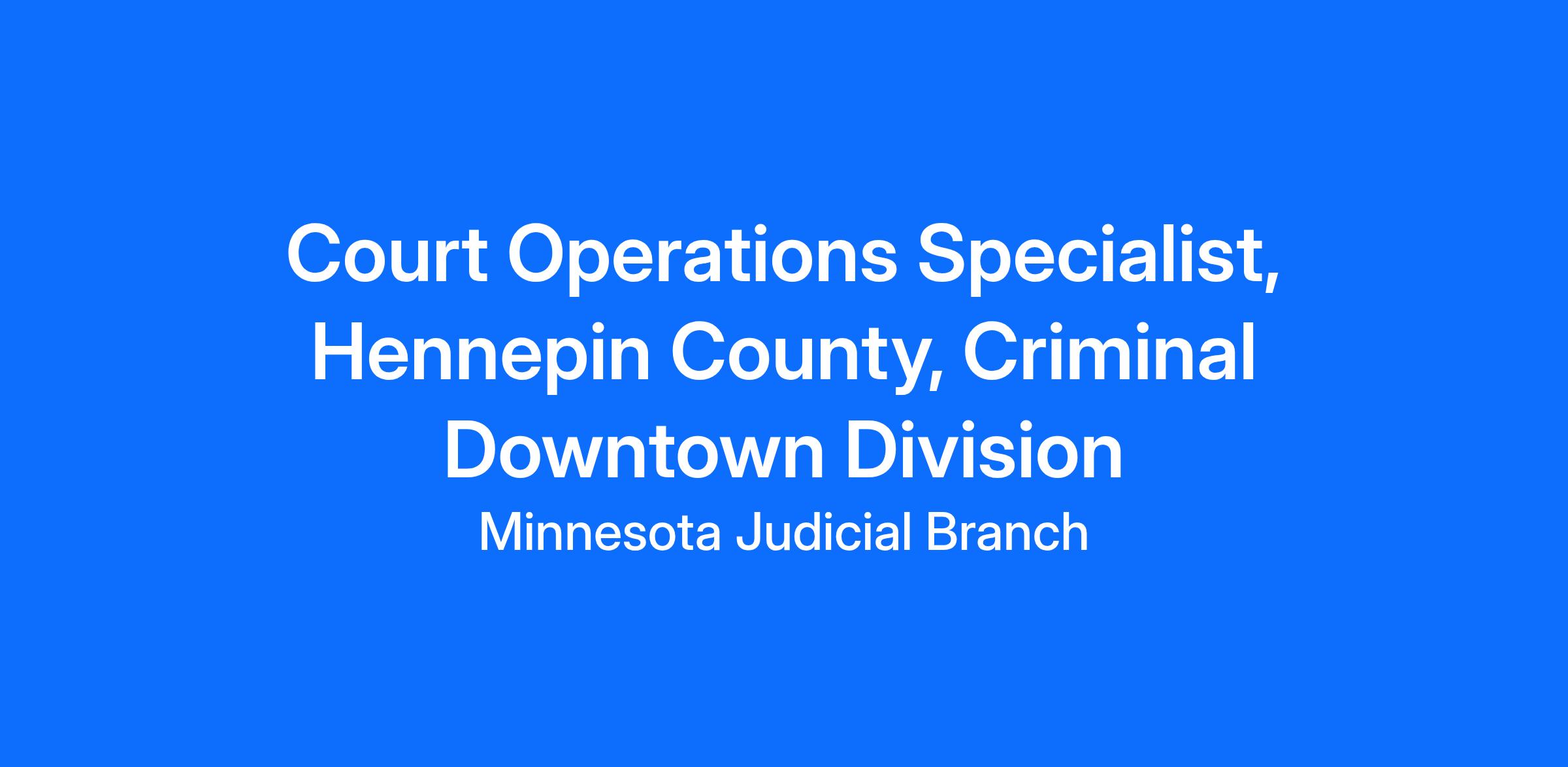 DescriptionHennepin County District Court invites qualified applicants for a Court Operations Specialist position on the Criminal Downtown team. This is a diverse, professional environment that promotes equity for all court staff and court customers. Court Operations Specialists perform advanced court operations work including training, quality assurance, compliance, report analysis, and complex case processing under limited supervision from their manager. This work entails a considerable amount of data entry and customer service. The Court Operations Specialist serves as the subject matter expert and point of contact for staff with regards to policies, procedures, report management, and financial case processing. A successful candidate for this position will be able to exercise independent judgment in a fast-paced environment and effectively manage competing demands.