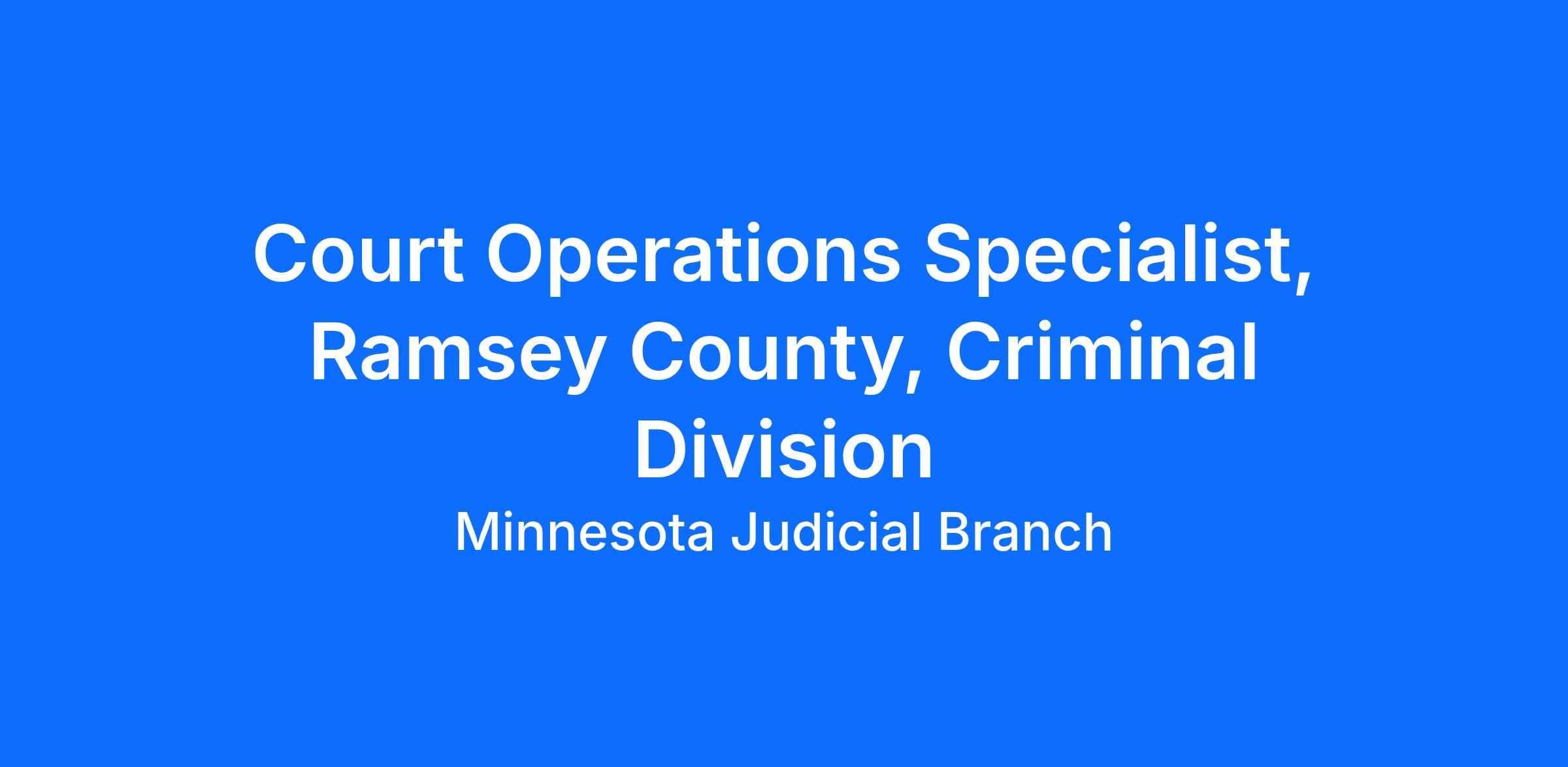 The Second Judicial District is accepting internal and external applications for a full-time Court Operations Specialist within the Court Support Unit in the Criminal Division of Ramsey County District Court. Under the general supervision of a Court Operations Supervisor, this position will perform the full scope of varied clerical duties with primary focus on court support, case processing, provide courtroom support, and assist with training for the entire Criminal Division. Successful candidates must be able to travel and work onsite at other Ramsey County courthouse locations, including Maplewood and Kellogg Courthouses.