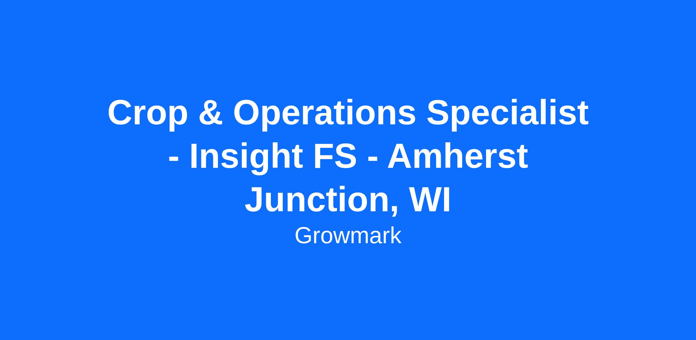 Crop & Operations Specialist - Insight FS - Amherst Junction, WI