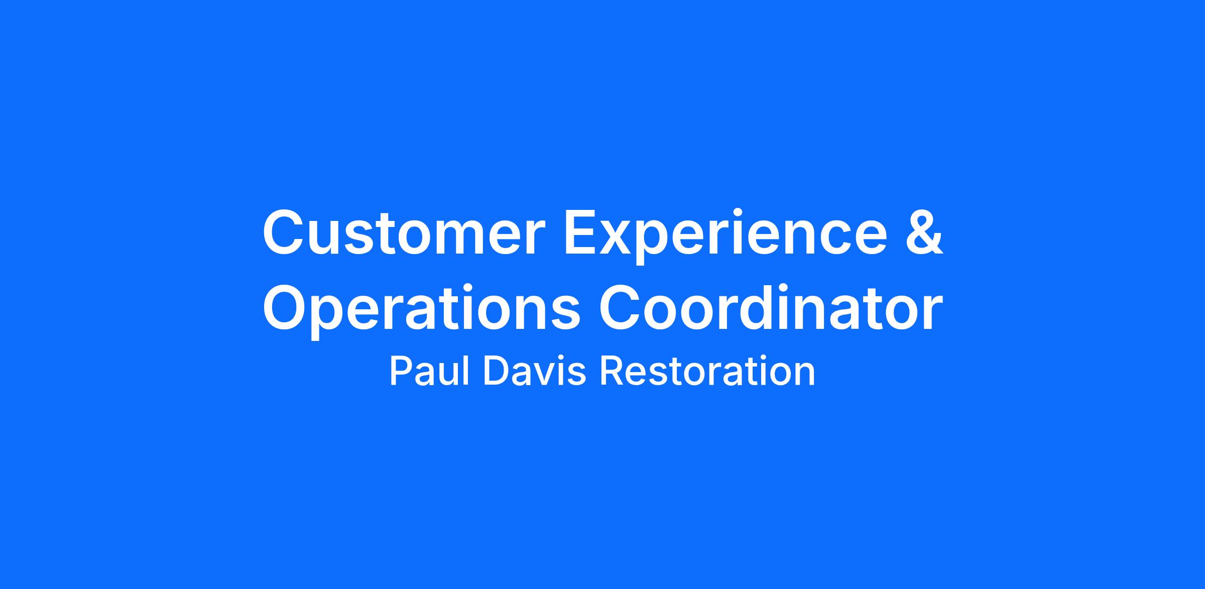 This role is the central hub of that process. You will own the customer journey from first call through project completion—ensuring every client feels informed, supported, and confident in choosing Paul Davis.
