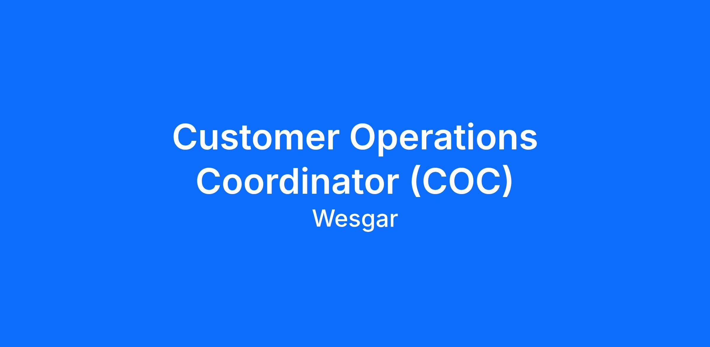 Wesgar Inc. is seeking a Customer Operations Coordinator (COC) to act as the central point of contact for all customer-facing schedule, status, and delivery communications.