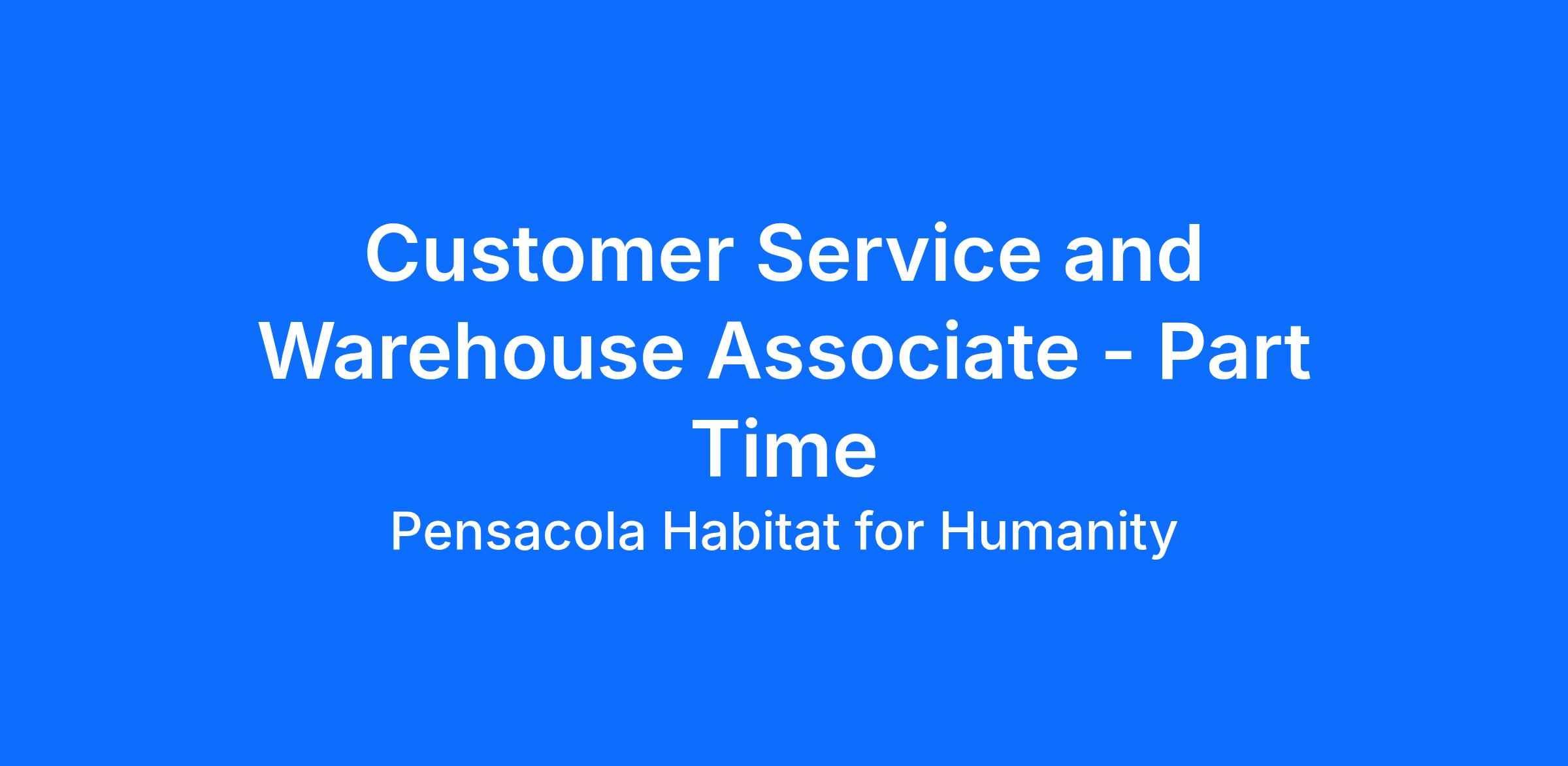 The Customer Service and Warehouse Associate will provide donors and shoppers with a positive experience making customer satisfaction a top priority. The Customer Service and Warehouse Associate will be expected to interact positively and professionally with homebuyers, volunteers, and paid staff at the Pensacola Habitat for Humanity ReStore. The Customer Service and Warehouse Associate will ensure that all donations are handled in a timely, organized, and safe manner. The Customer Service and Warehouse Associate is to assist with other duties including but not limited to receiving, cleaning, pricing, product placement, loading customer vehicles and cash register operation. It shall be the Customer Service and Warehouse Associate’s responsibility to coordinate and communicate effectively with supervisors and other employees regarding any store safety concerns.