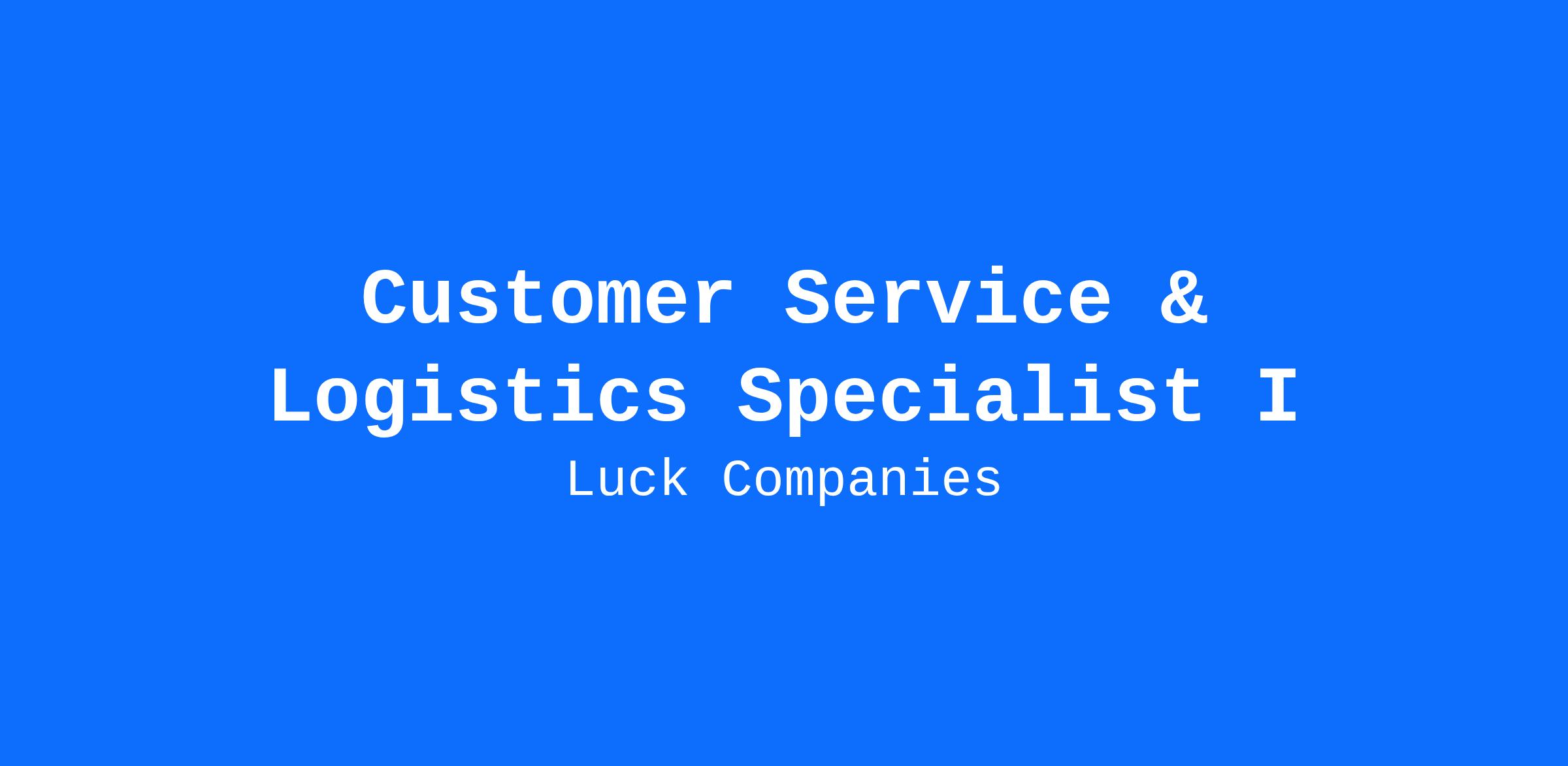 Customer Service & Logistics Specialist