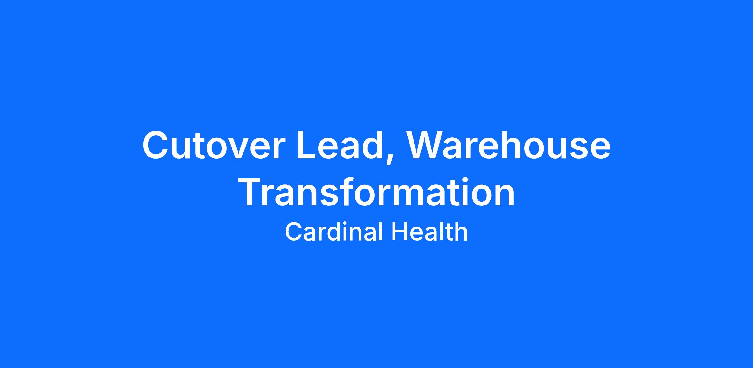 Cardinal Health is seeking a Cutover Lead, Warehouse Transformation to lead the definition and execution of the cutover strategy for the technology components of the projects within the multi-year strategic initiative called Program Motion.