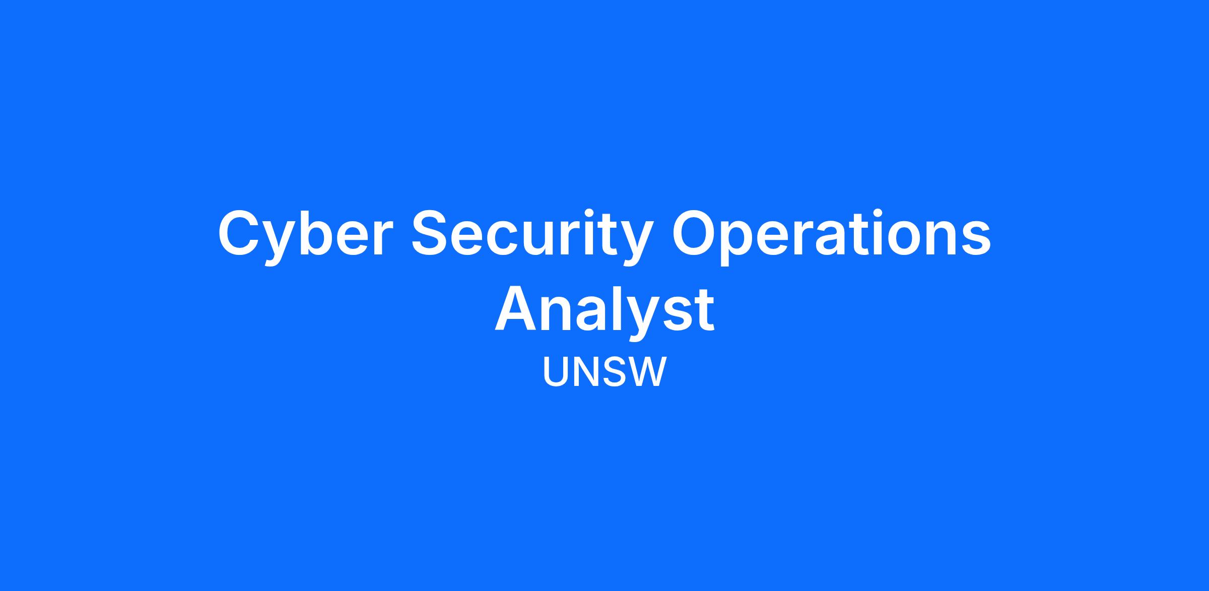 - Full time continuing role within UNSW IT as a Cyber Security Operartions Analyst