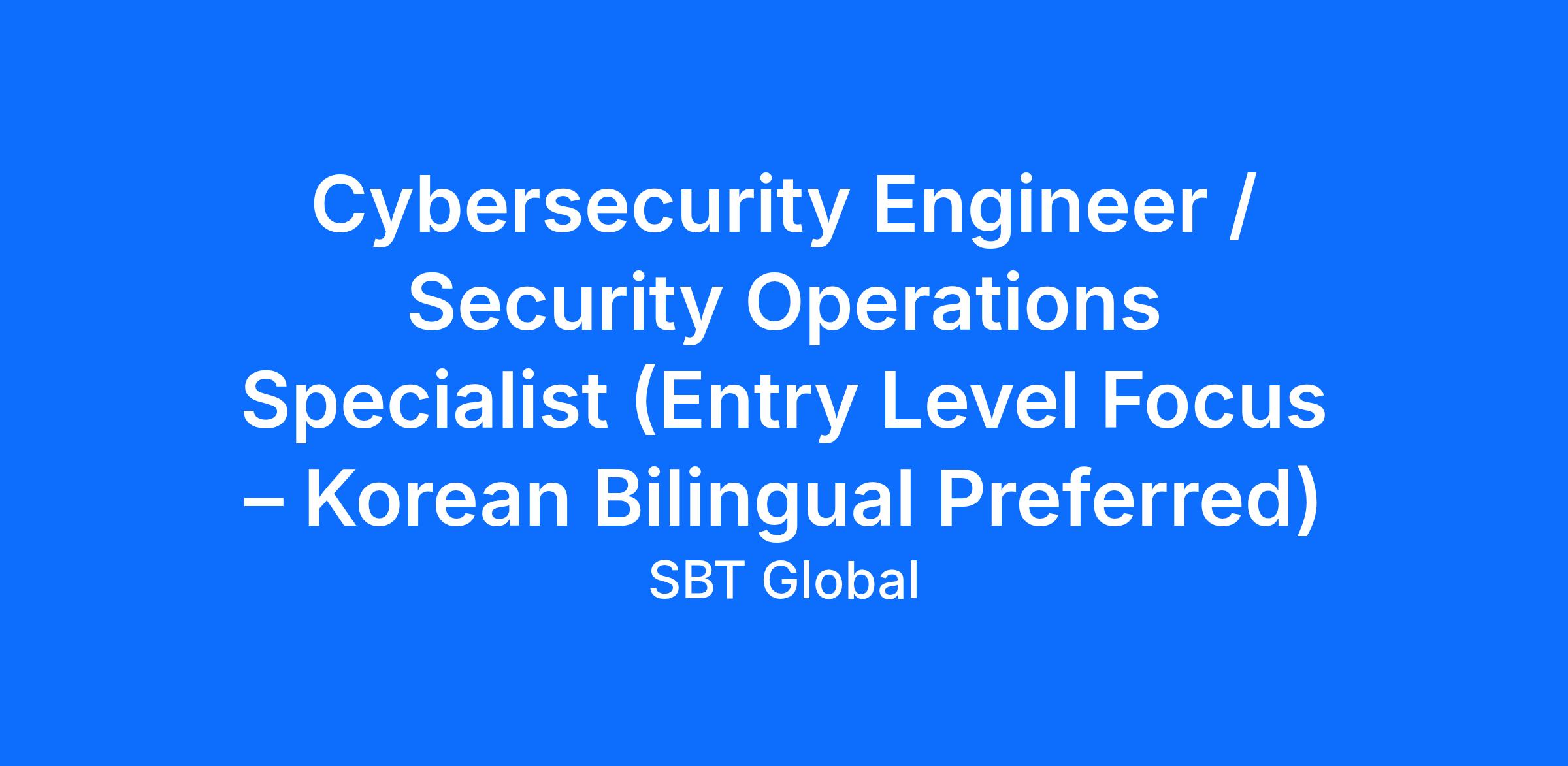 Cybersecurity Engineer / Security Operations Specialist (Entry Level Focus – Korean Bilingual Preferred)