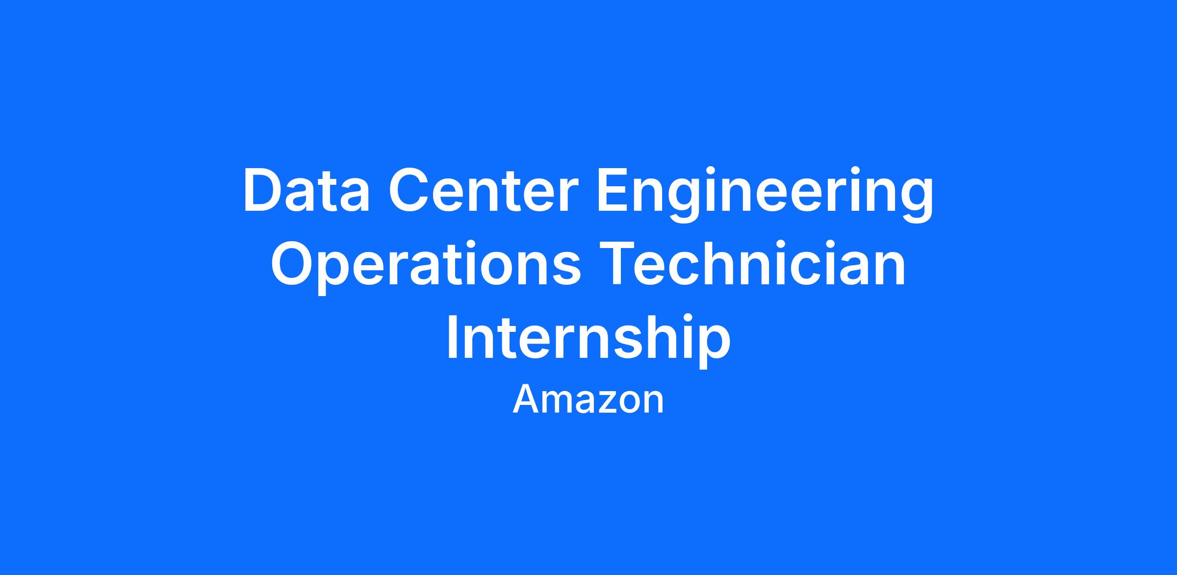 Amazon Web Services (AWS) is seeking Data Center Engineering Operations (DCEO) intern technicians between July 2026 - January 2027. Interns will participate in our 6-month work and training internship at our Northern Virginia facilities.
