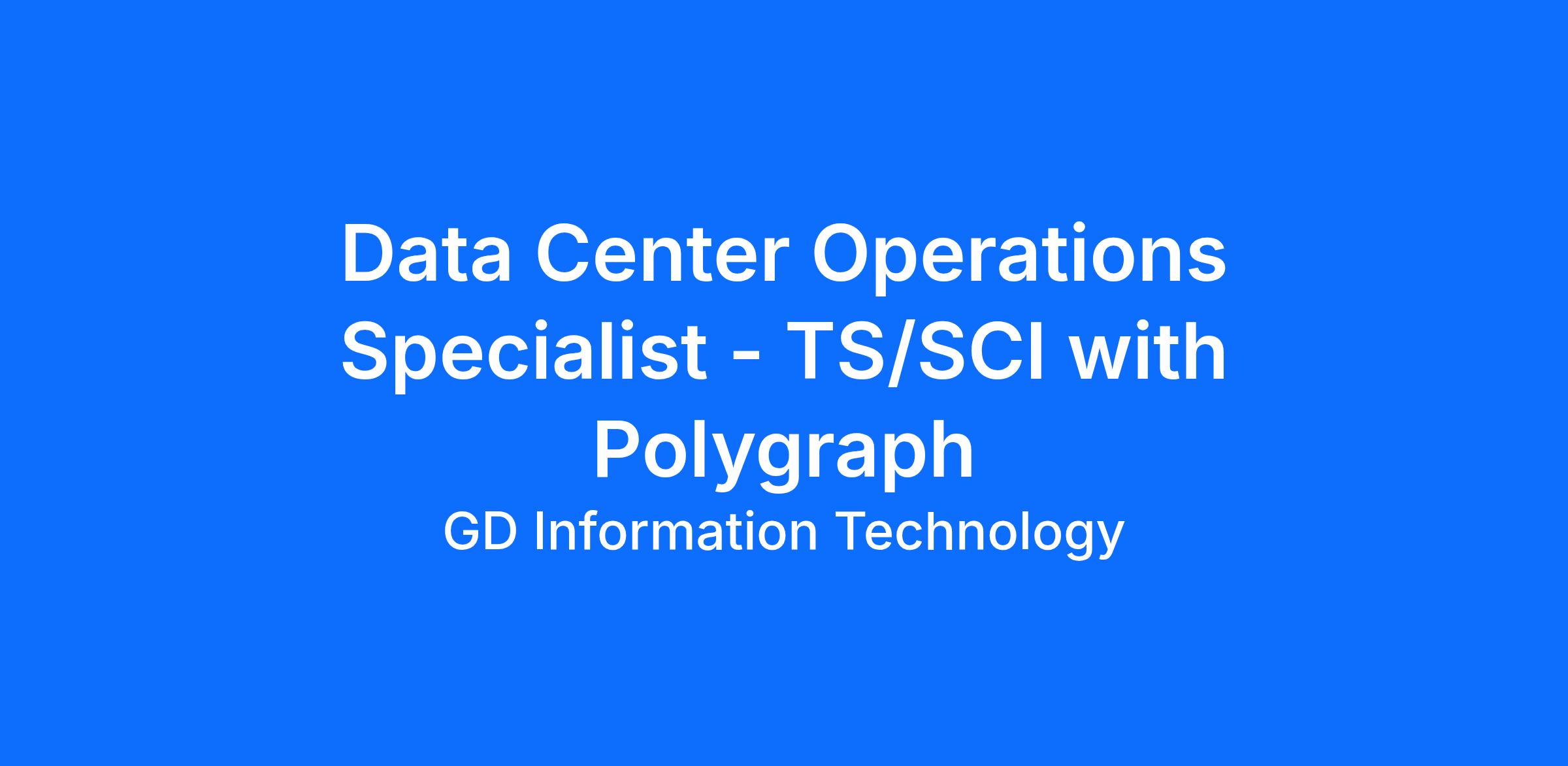 At GDIT, people are our differentiator. As a Data Center Ops Specialist, you will help ensure today is safe and tomorrow is smarter. Our work depends on Data Center Ops Specialist joining our team to support Government activities, solve complex IT issues and provide exceptional customer service.