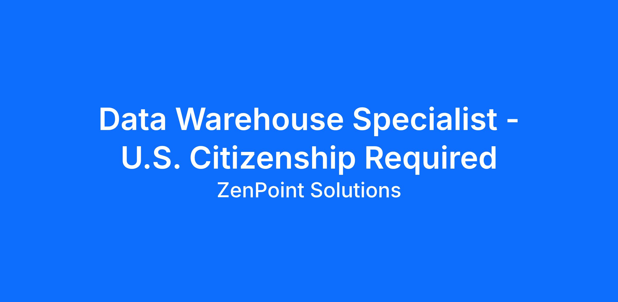 Data Warehouse Specialist - U.S. Citizenship Required