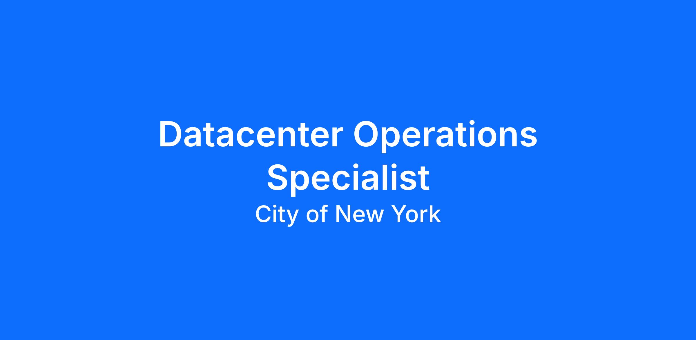 ITSD is seeking a qualified candidate for the position of IT Project Specialist to act in the role of Datacenter Operations Specialist who will perform the following duties: