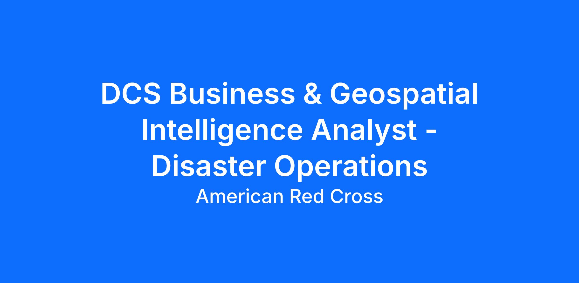 DCS Business & Geospatial Intelligence Analyst - Disaster Operations
