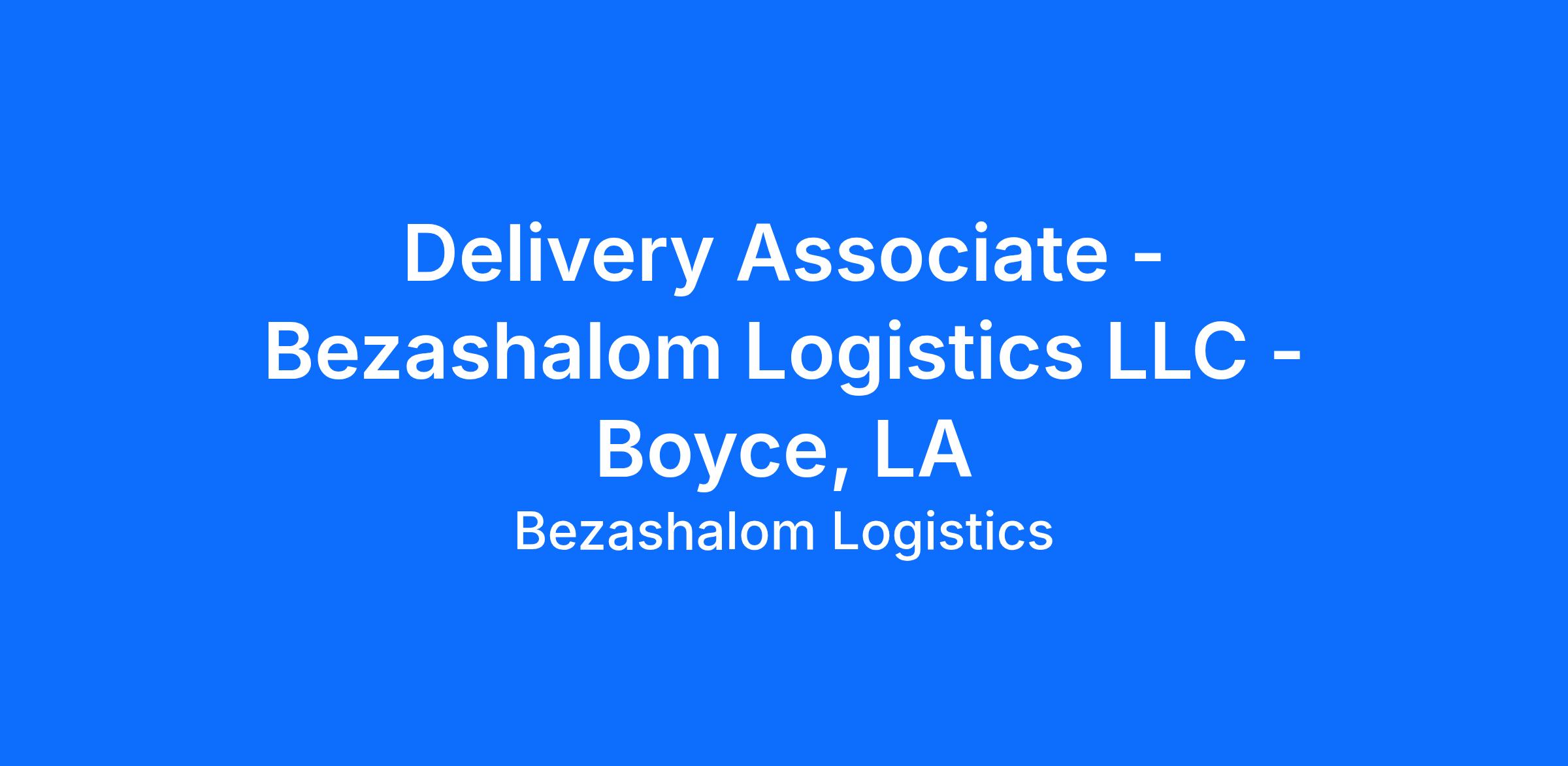 Are you interested in a new opportunity where you can work independently, make a difference in your community, and delight hundreds of customers every day? Apply to be a Delivery Associate today with Bezashalom Logistics! We offer competitive compensation, benefits, a great company culture, and growth opportunities—no delivery experience is required. We are an Equal Opportunity Employer. All qualified applicants will be considered for employment regardless of age, national origin, race, color, disability, religious belief or sexual orientation.