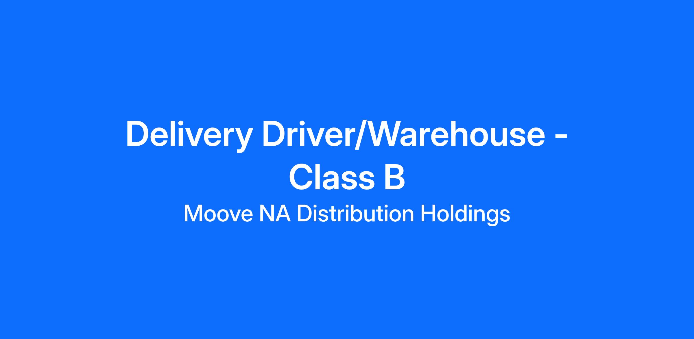 Moove is currently recruiting for a delivery driver. Hours are [insert days and hours] and you are home daily!