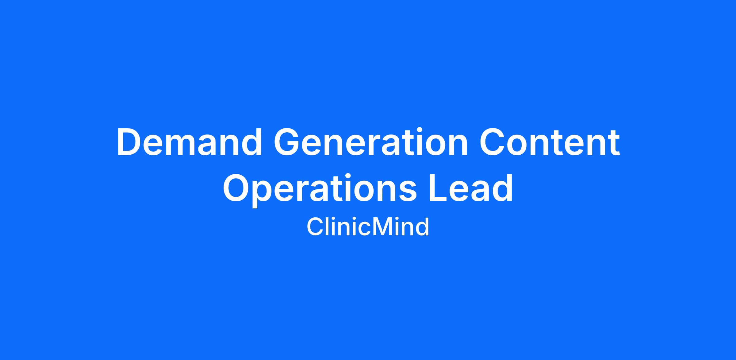 ClinicMind is seeking a Demand Generation Content Operations Lead to create high-quality, strategic content that fuels our lead generation engine and strengthens ClinicMind’s position as the all-in-one platform for growing healthcare practices.