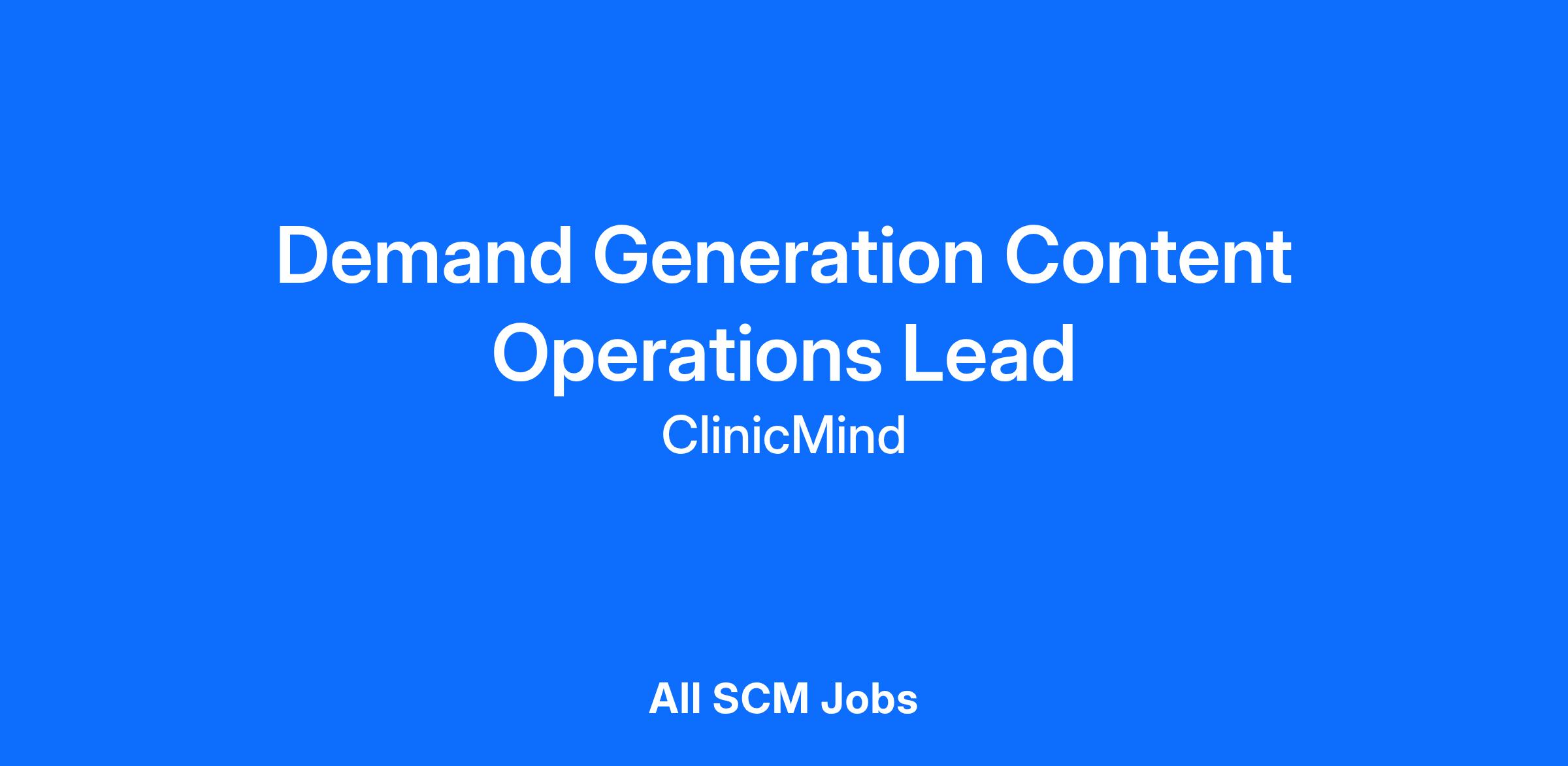 ClinicMind is seeking a Demand Generation Content Operations Lead to create high-quality, strategic content that fuels our lead generation engine and strengthens ClinicMind’s position as the all-in-one platform for growing healthcare practices.
