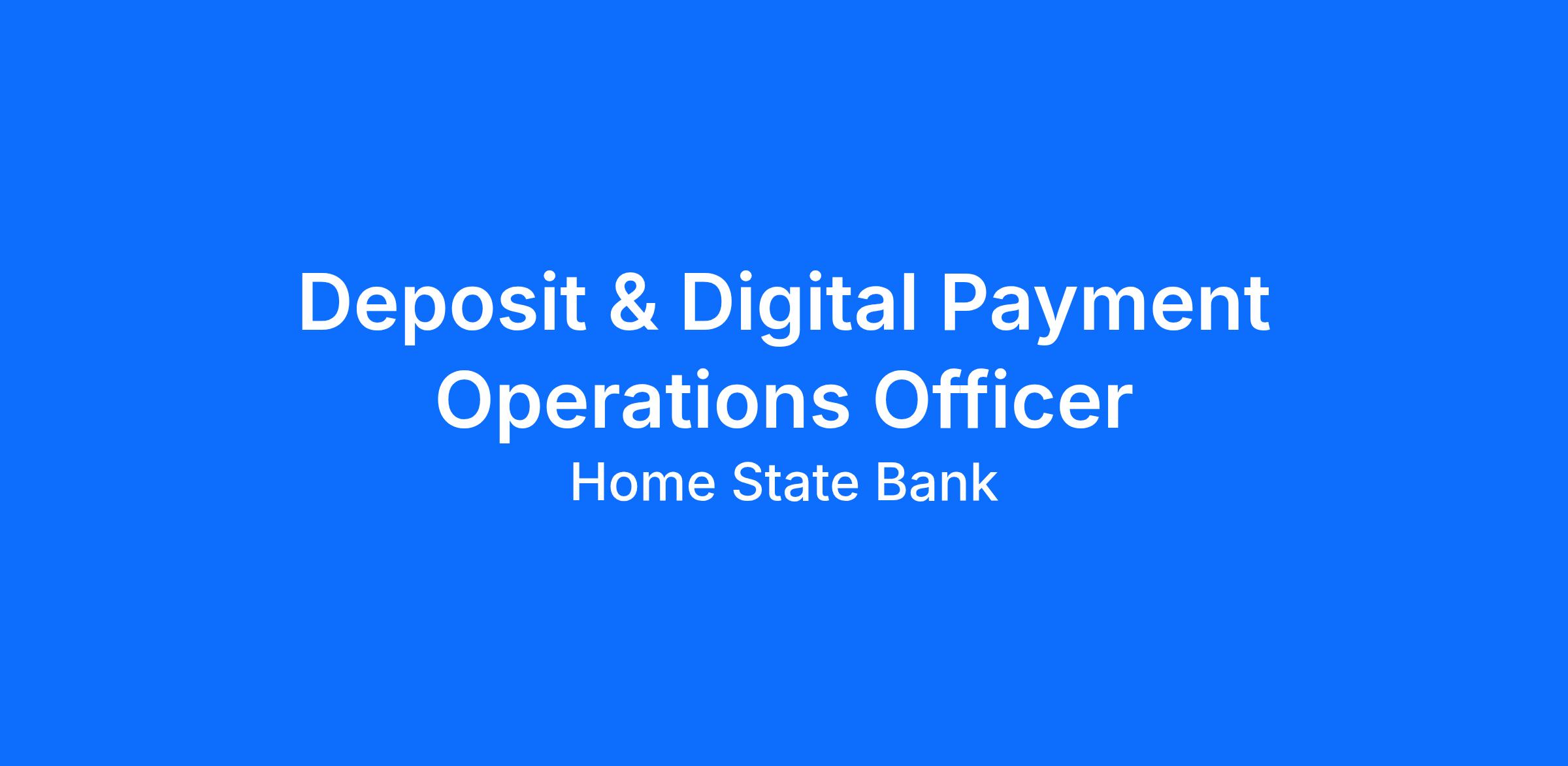 Home State Bank has a Deposit & Digital Payment Operations Officer opening at the downtown Crystal Lake location.