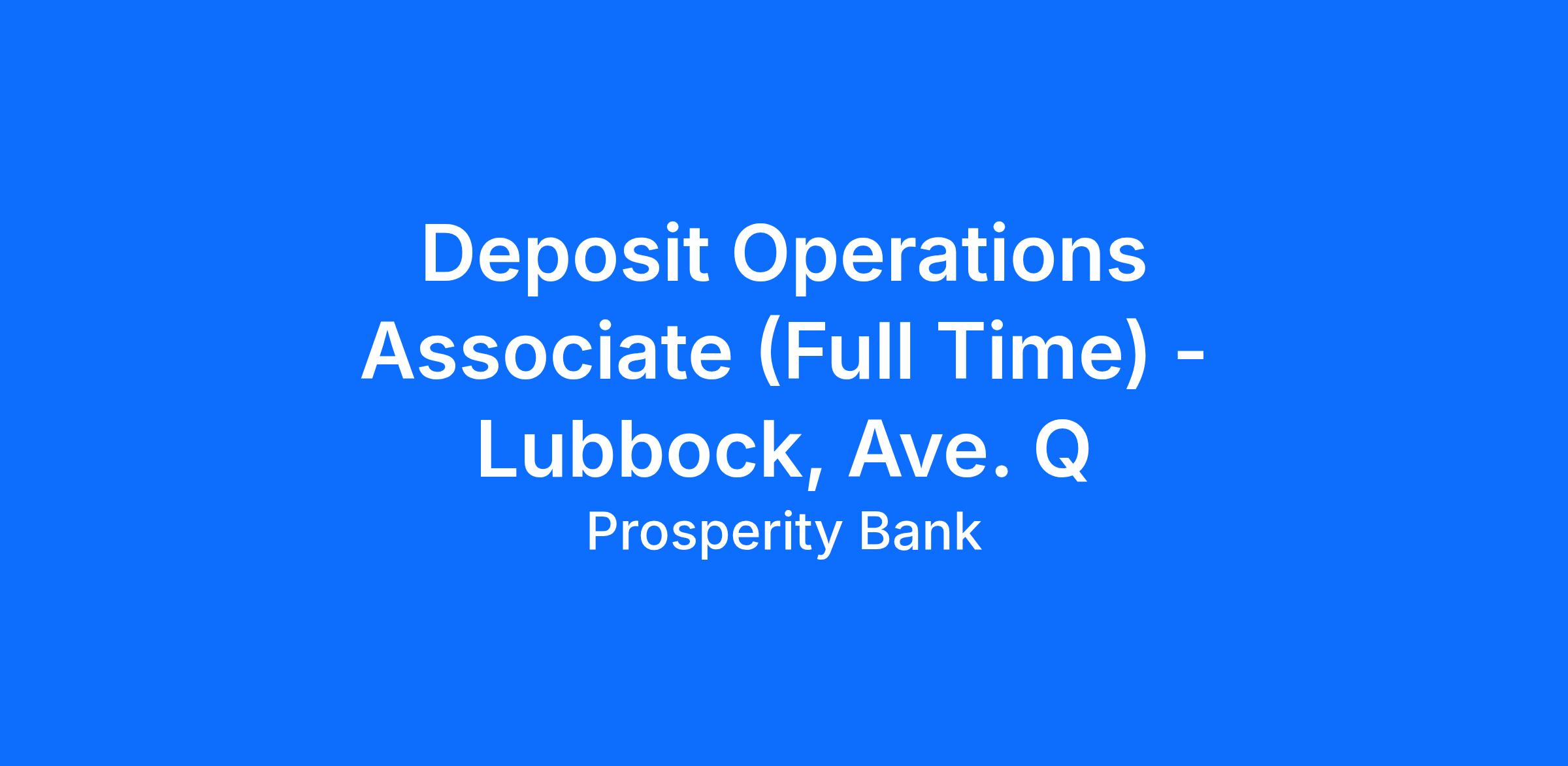 Deposit Operations Associate (Full Time) - Lubbock, Ave. Q