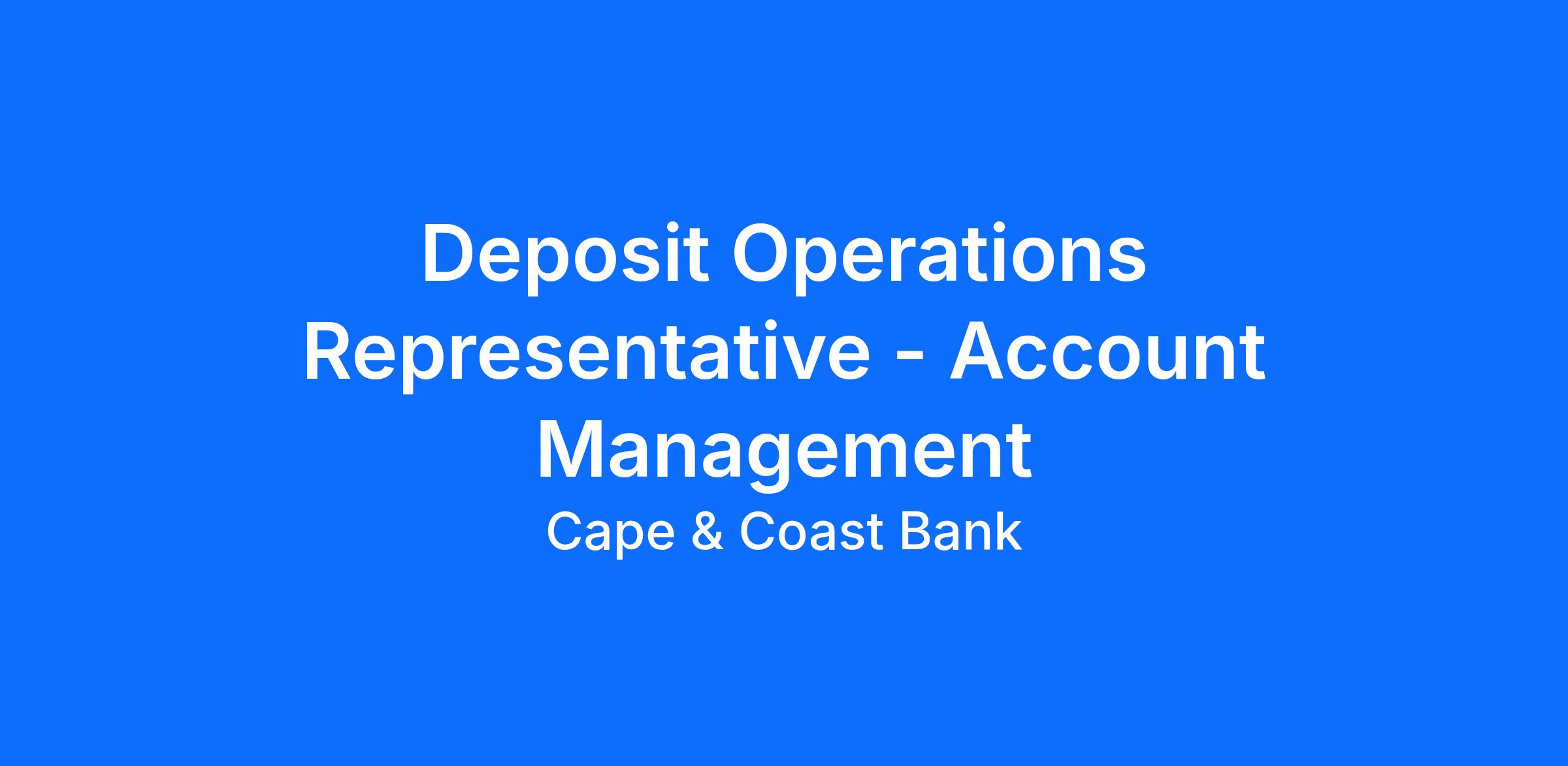 Are you someone who enjoys connecting with others and making a real difference in your community? Our Deposit Operations Team looking for a motivated individual to join us as a Deposit Operations Representative - Account Management. The Deposit Operations Representative - AM supports the Account Management team and performs a wide variety of customer service and administrative duties to provide service to Bank's customers in conformance with established Bank policies and operating procedures. The Deposit Operations Representative will have general knowledge of Deposit Operations and will be responsible for key tasks as assigned.