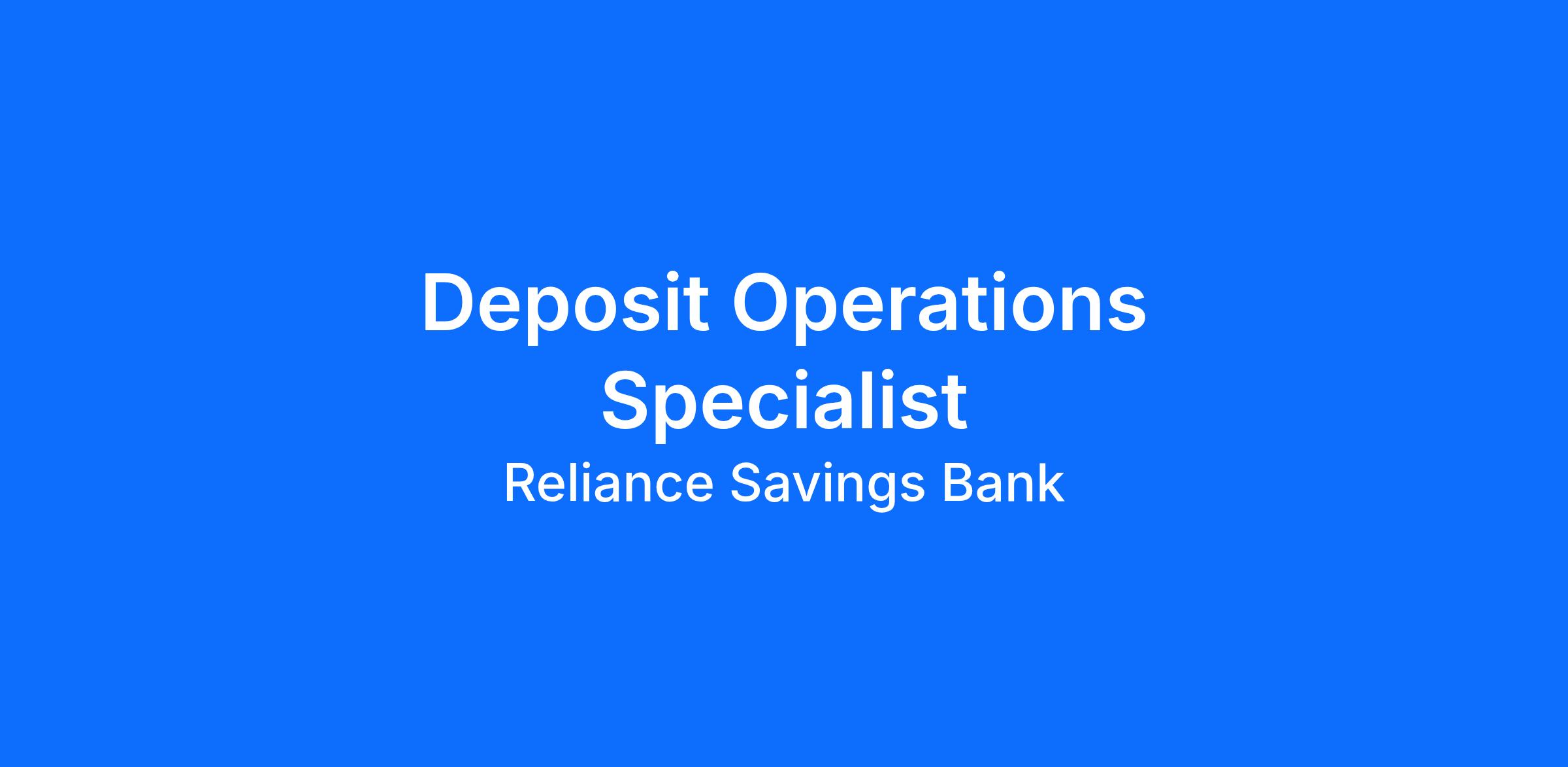 As a Deposit Operations Specialist, you'll get to: