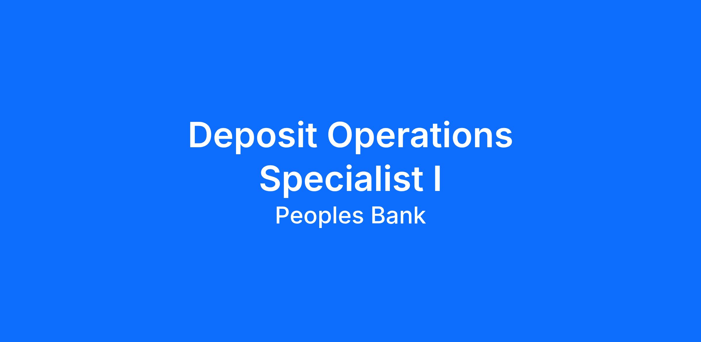 This position is responsible for delivering outstanding customer service by consistently providing support with a friendly demeanor and a can-do attitude for deposit products offered by Peoples Bank. Must have the ability to use job knowledge and available systems information to independently answer questions and resolve issues in a timely manner.