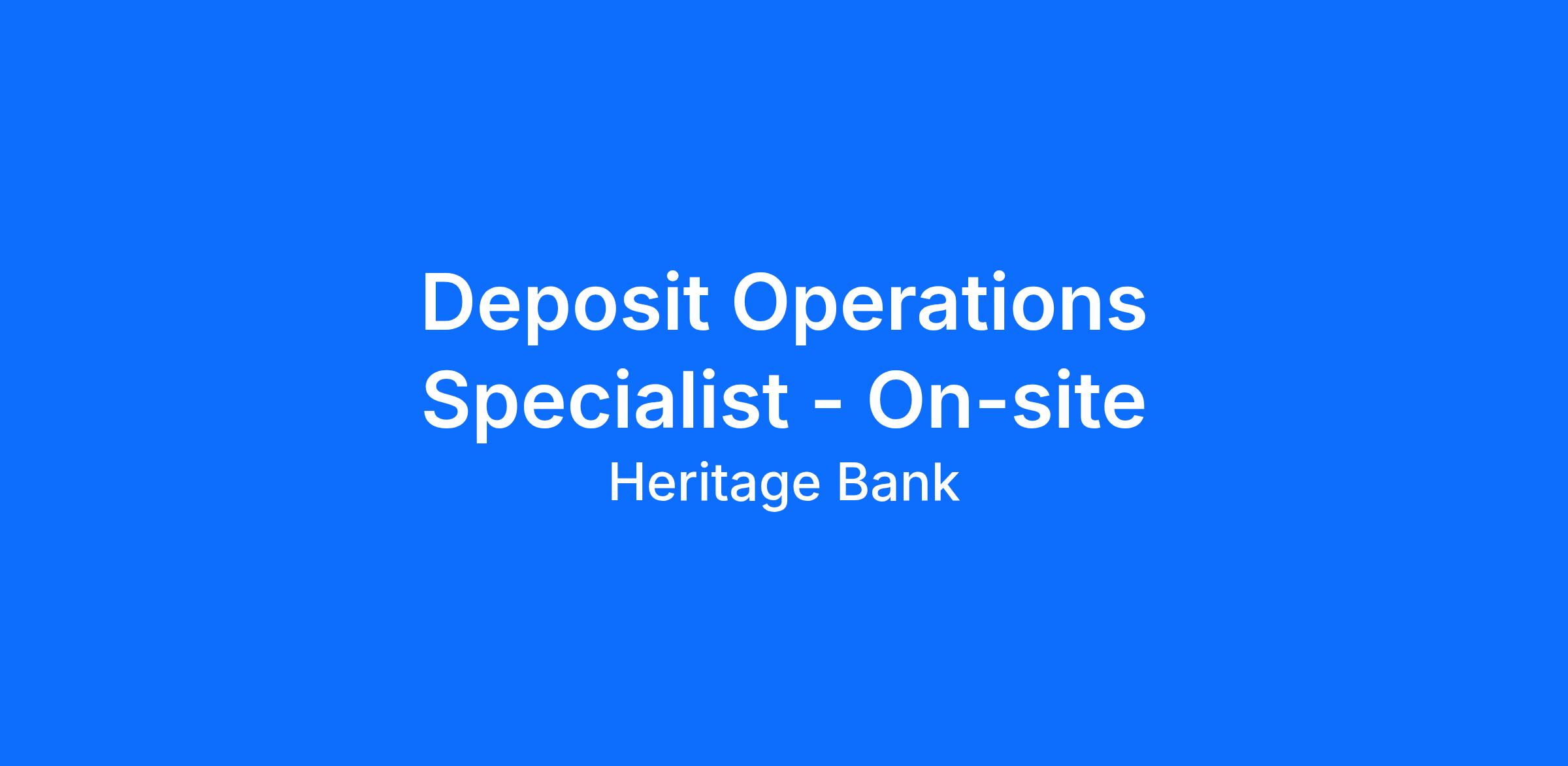 Heritage Bank has an exciting opportunity within the Deposit Operations team!
