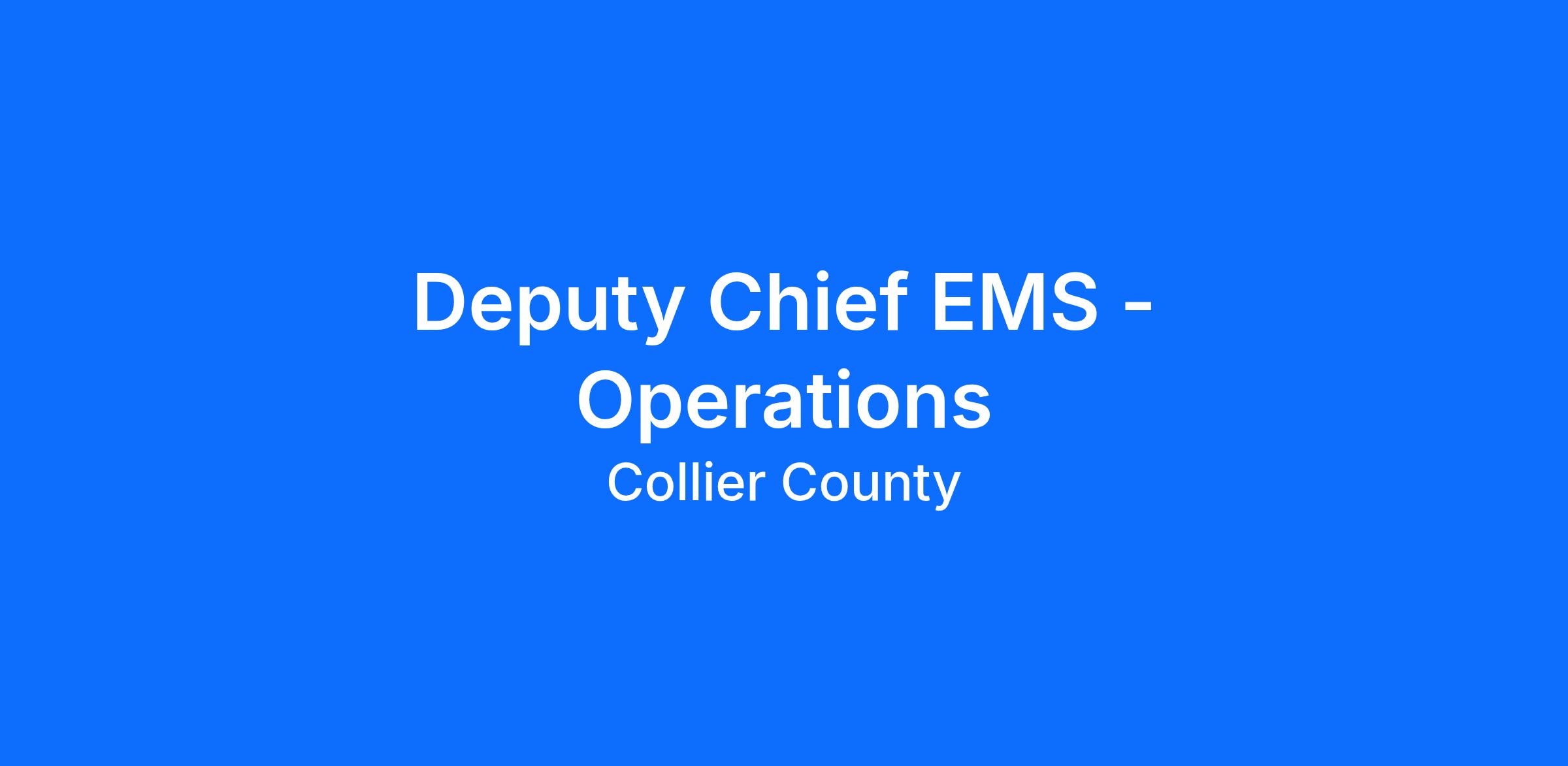 Assist the Chief of Emergency Medical Services in the performance of operations, managerial, administrative, support services, and/or strategic services including but not limited to, specialized work functions associated with overseeing all Emergency Medical Services (EMS) divisions, providing oversight, incident command, and on-the-scene emergency medical care, monitoring contractual activities, and coordinating EMS activities with other Collier County Divisions, municipal agencies, and fire districts.