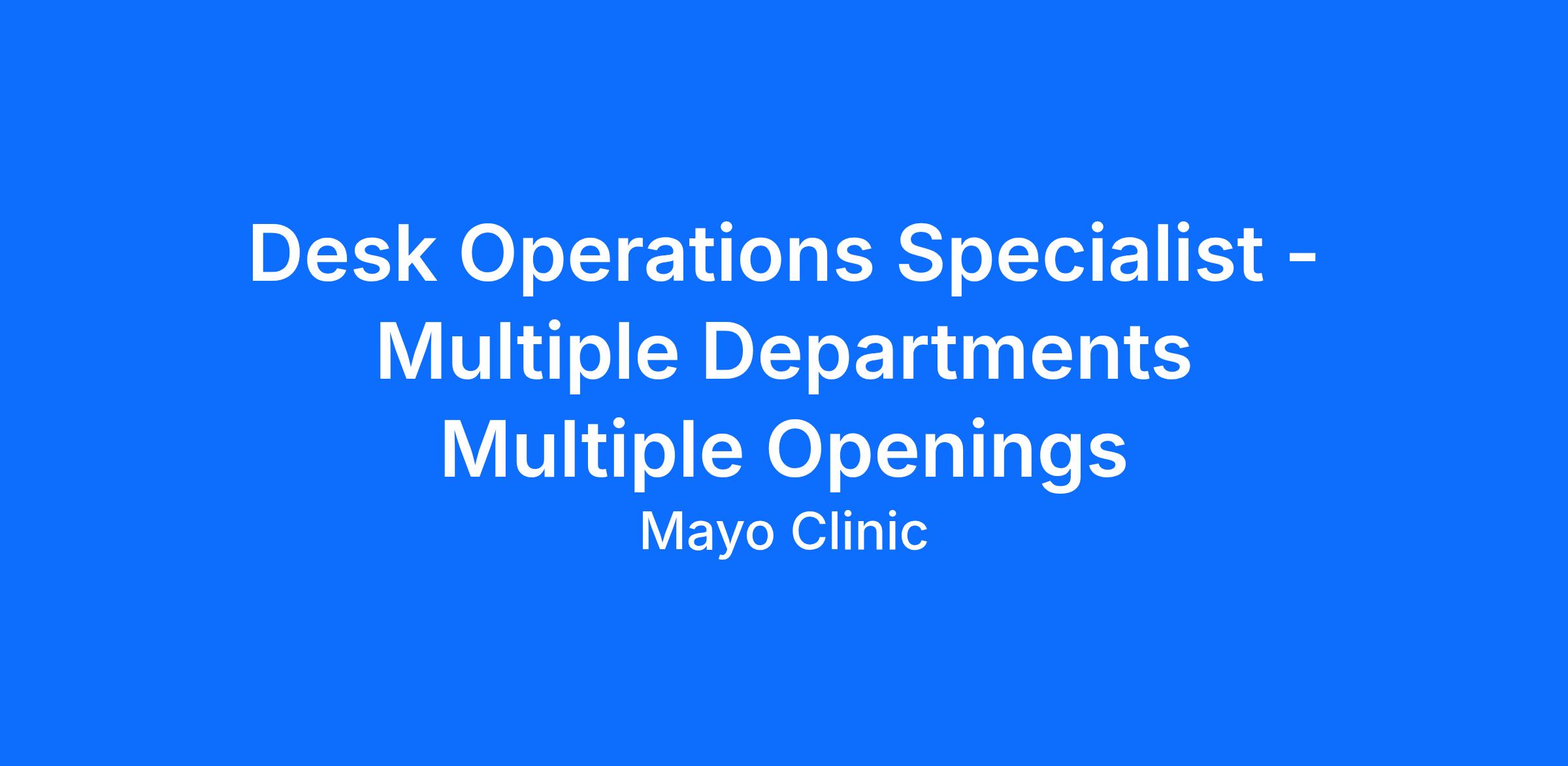 This posting is for applicants external to Mayo Clinic only. Internal candidates please search for Desk Operations Specialist in the internal Opportunity Marketplace.