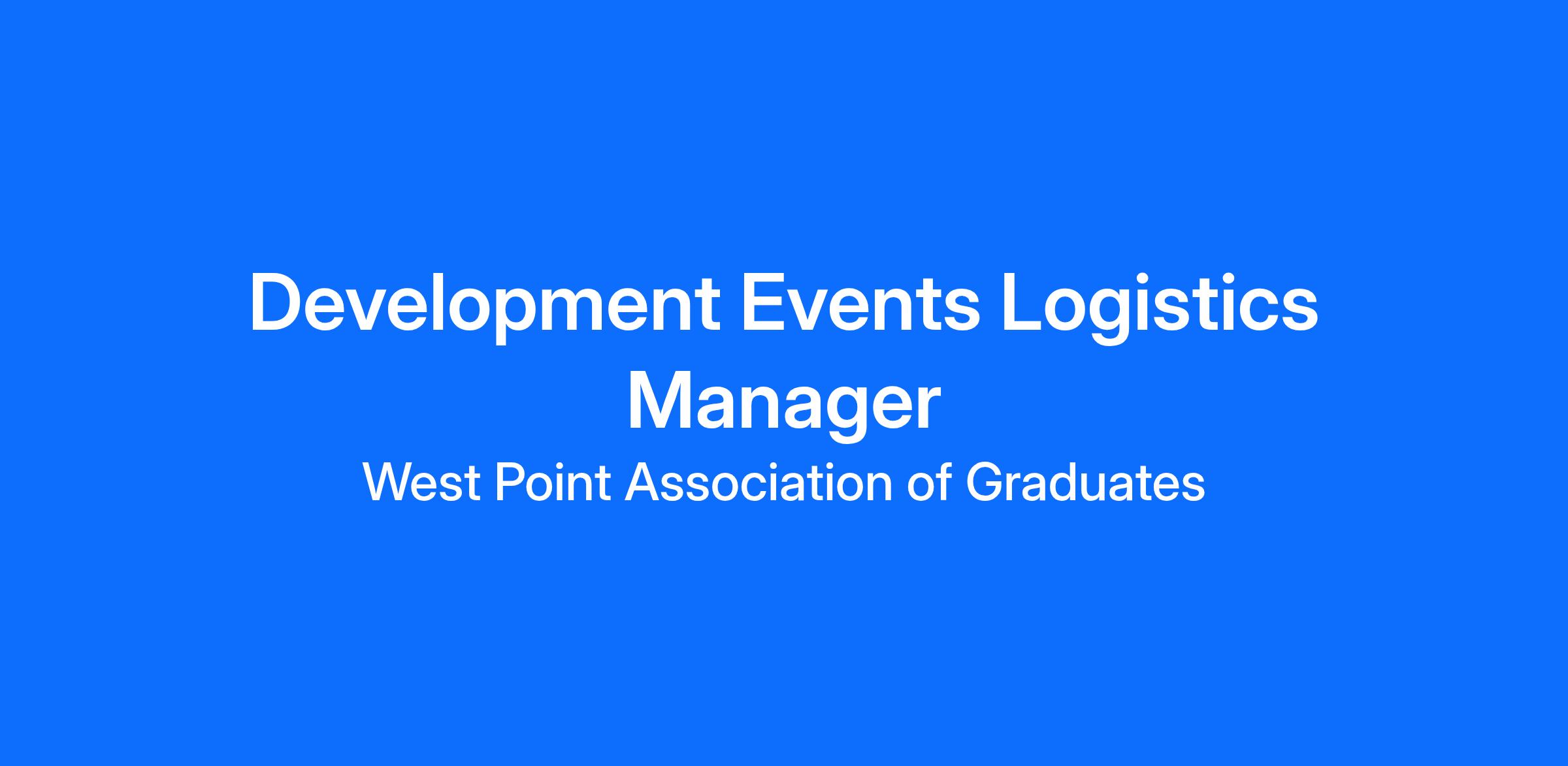 West Point Association of Graduates (WPAOG) is seeking a Logistics Manager of Development Events. The incumbent in this position will report directly to the Director of Development Events. The Development Events Logistics Manager is responsible for the planning of front office meetings and events, ensuring seamless logistics and an exceptional experience for all participants. In addition, this role provides support for up to 90 annual development events, working collaboratively with the Development team to advance engagement, stewardship, and fundraising initiatives. The ideal candidate is detail-oriented, highly organized, and able to manage multiple priorities in a fast-paced environment.