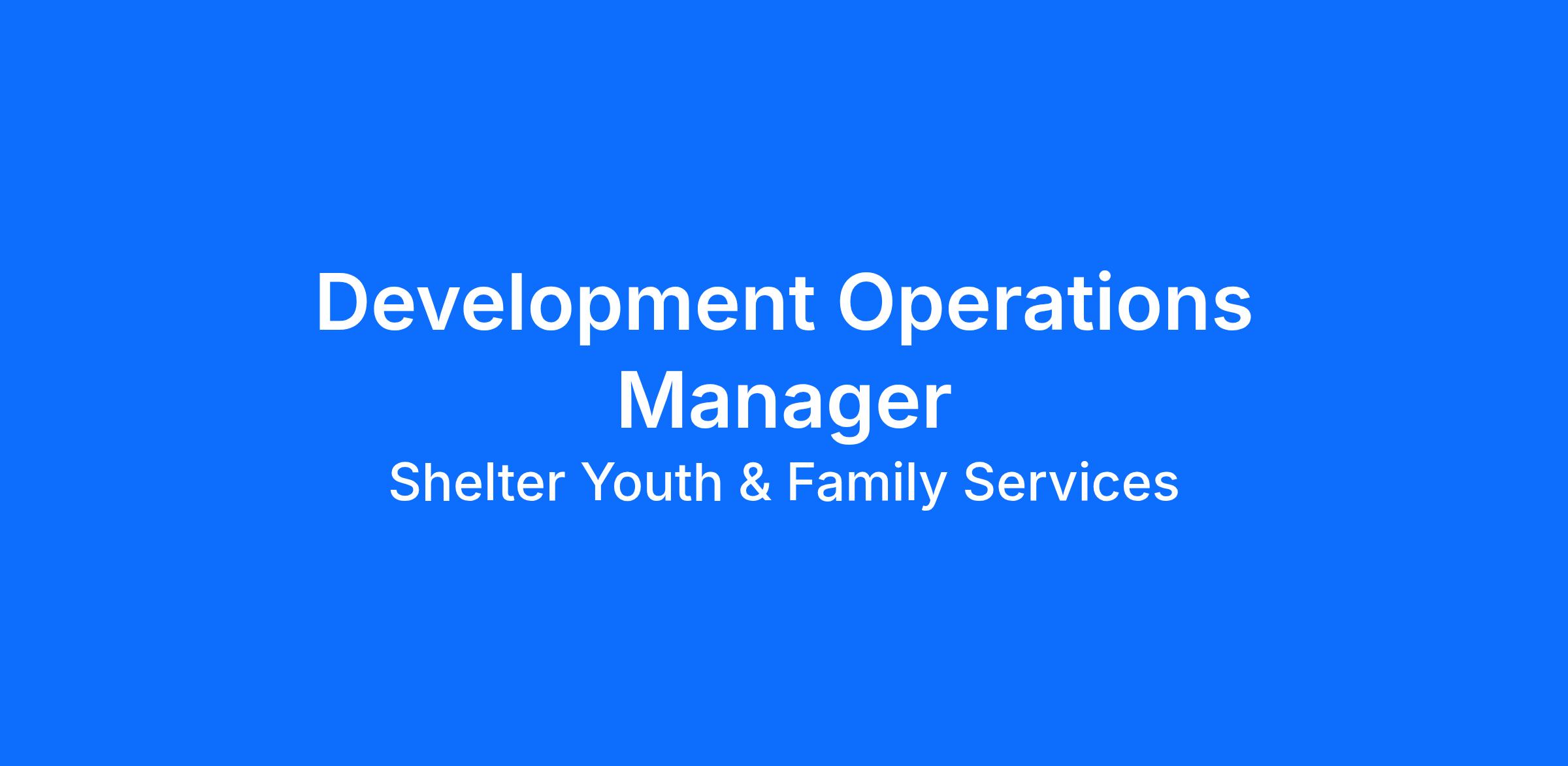 The Development Operations Manager will be an experienced and dedicated team player to serve a key role in the Development Department. The right candidate must demonstrate passion about Shelter's mission.