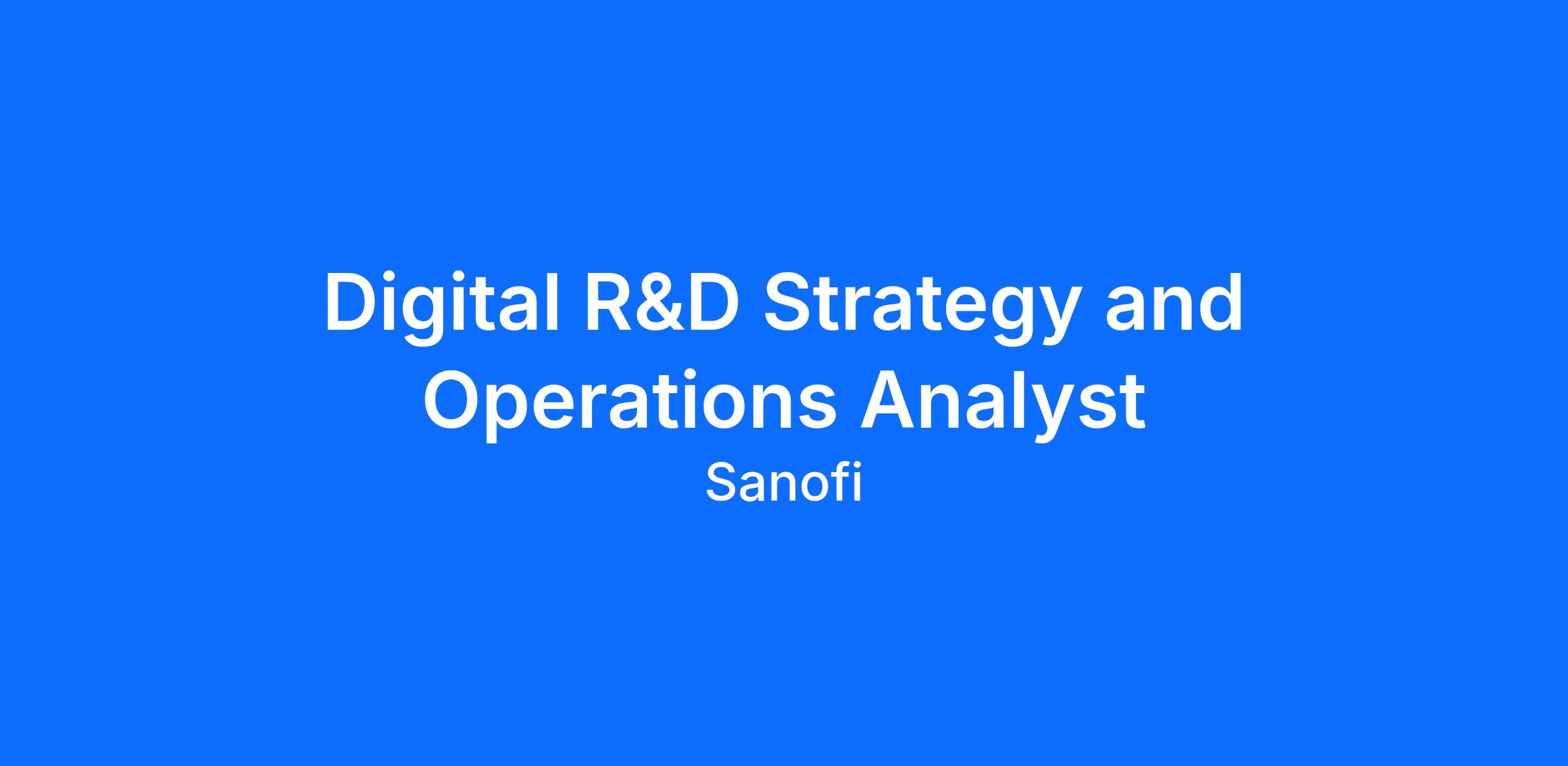 Are you ready to help shape the future of medicine? As the Digital R&D Strategy and Operations Analyst, you will support Operations Leads in ensuring the smooth and effective running of up to two verticals' digital product portfolio. You will contribute to strategy execution, financial tracking, performance reporting, and stakeholder communications — helping the team deliver impact at scale across Digital R&D.