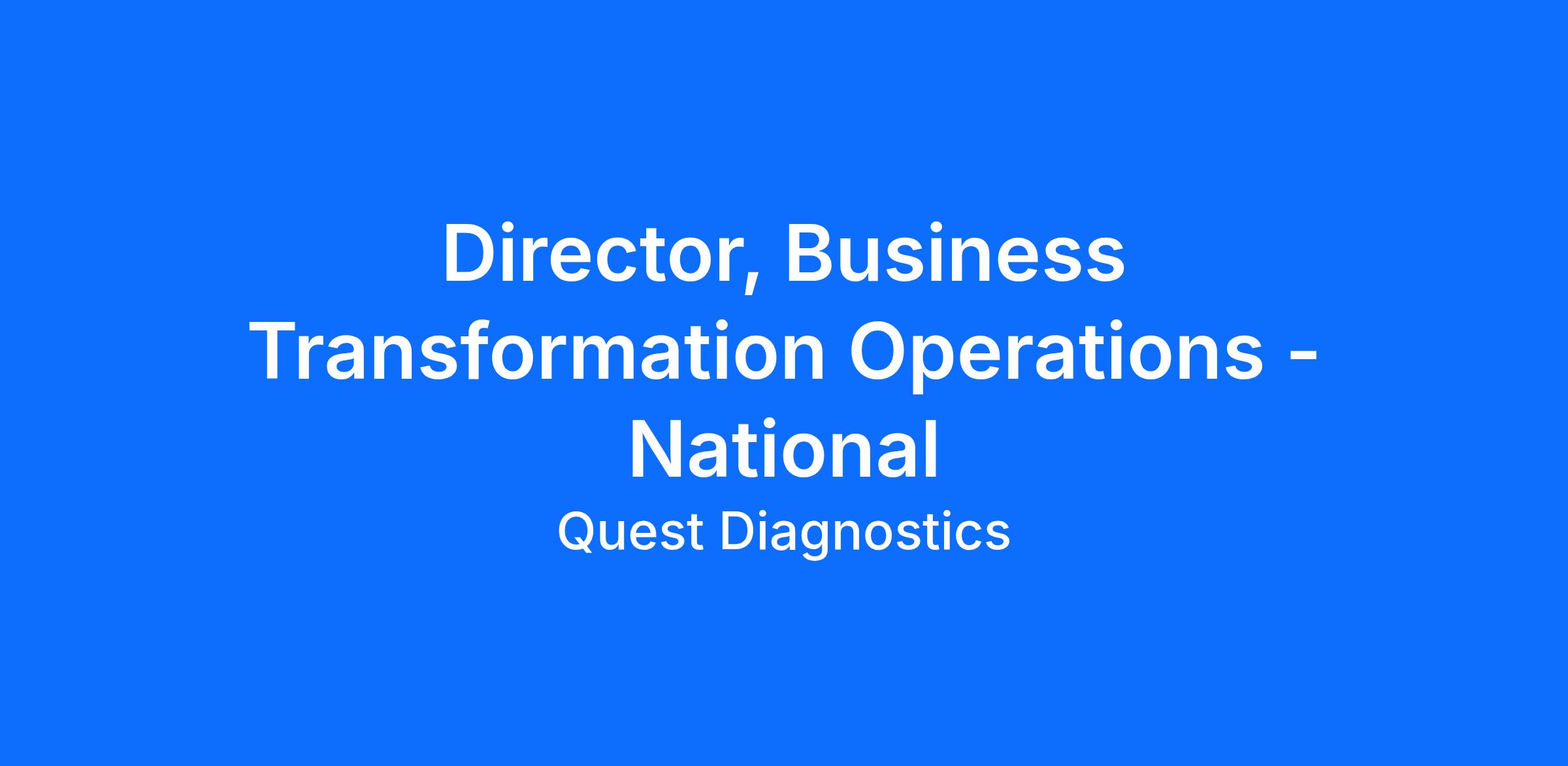 The Director, Business Transformation Operations – National will be responsible for leading Lean transformation by developing and deploying Lean Business System standards and methods across the organization while improving operational performance. The successful candidate will drive operational process rigor and performance in Labs, Logistics, and Patient Service Centers across all regions, while working closely with cross-functional teams to develop actionable roadmaps to increase efficiency across operational business processes and sub-processes.